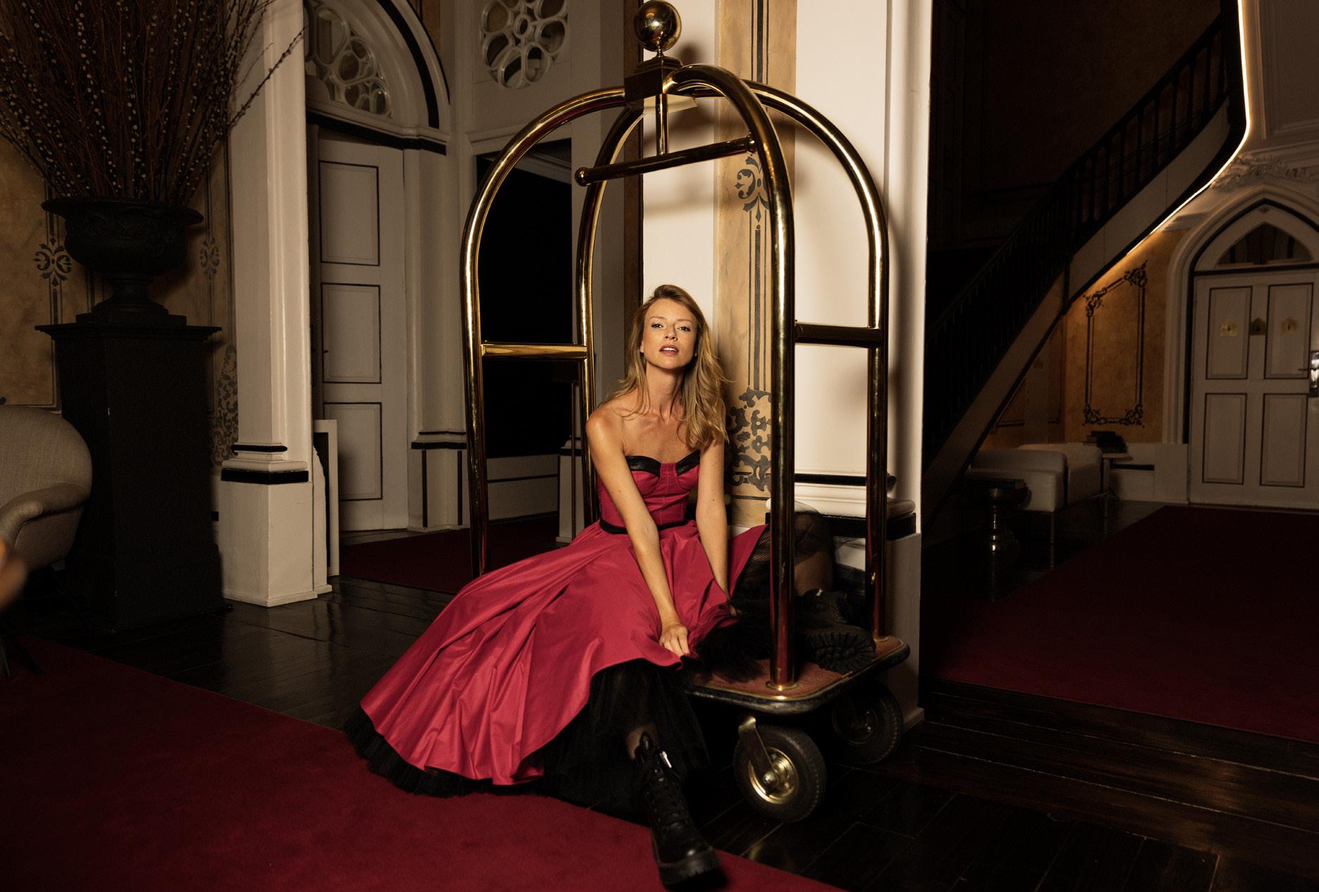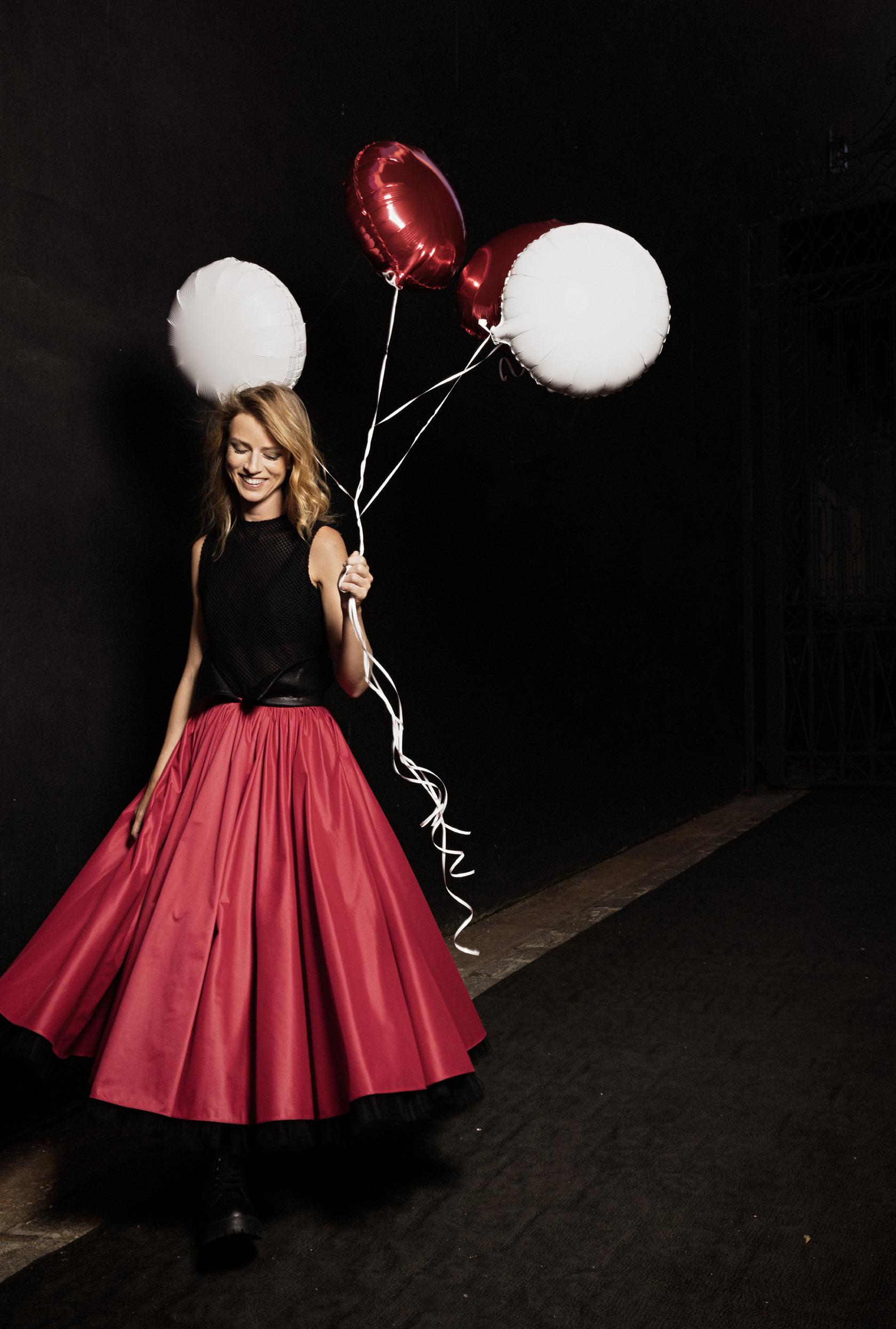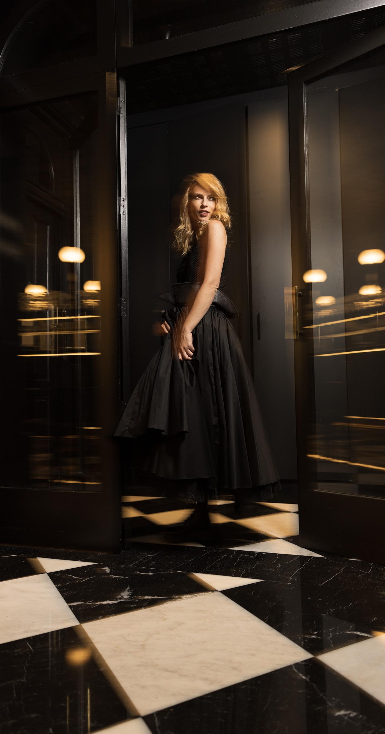 Paintings that turn into pieces of clothing.Bold style. She combines her passion for Christian Dior’s”New Look”, the Golden Age of Hollywood and Andy Warhlo popart.