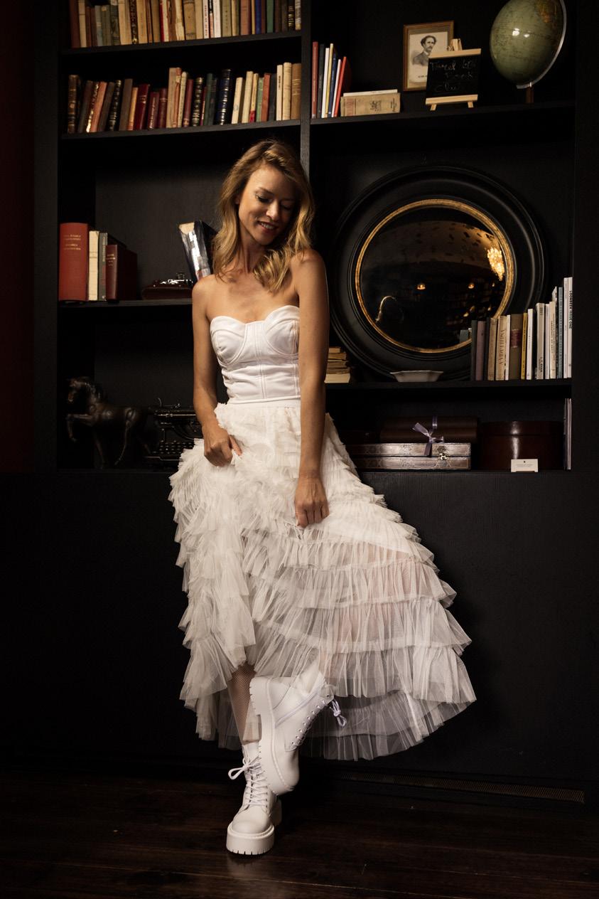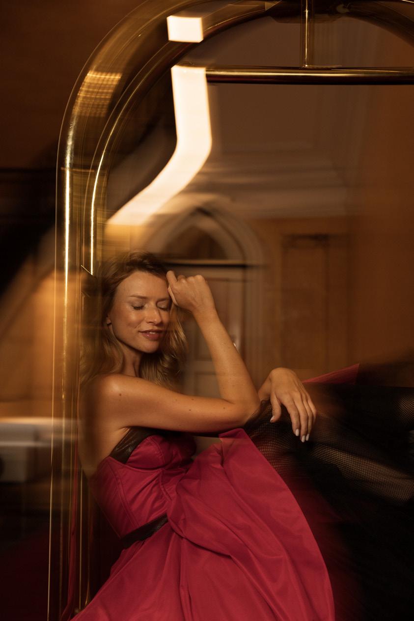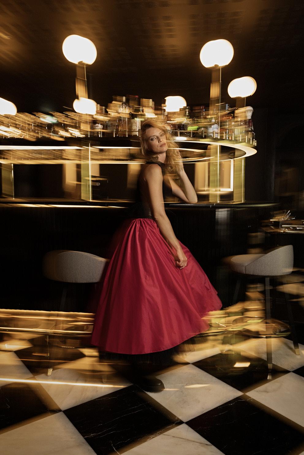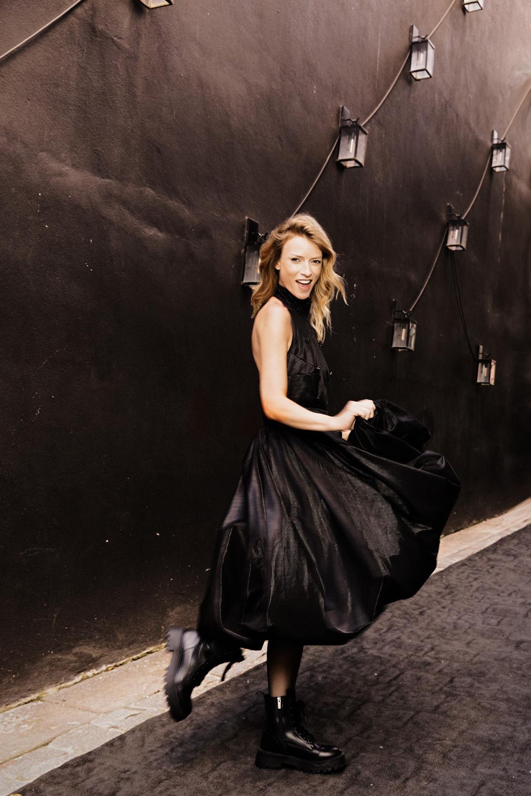 Paintings that turn into pieces of clothing.Bold style. She combines her passion for Christian Dior’s”New Look”, the Golden Age of Hollywood and Andy Warhlo popart.