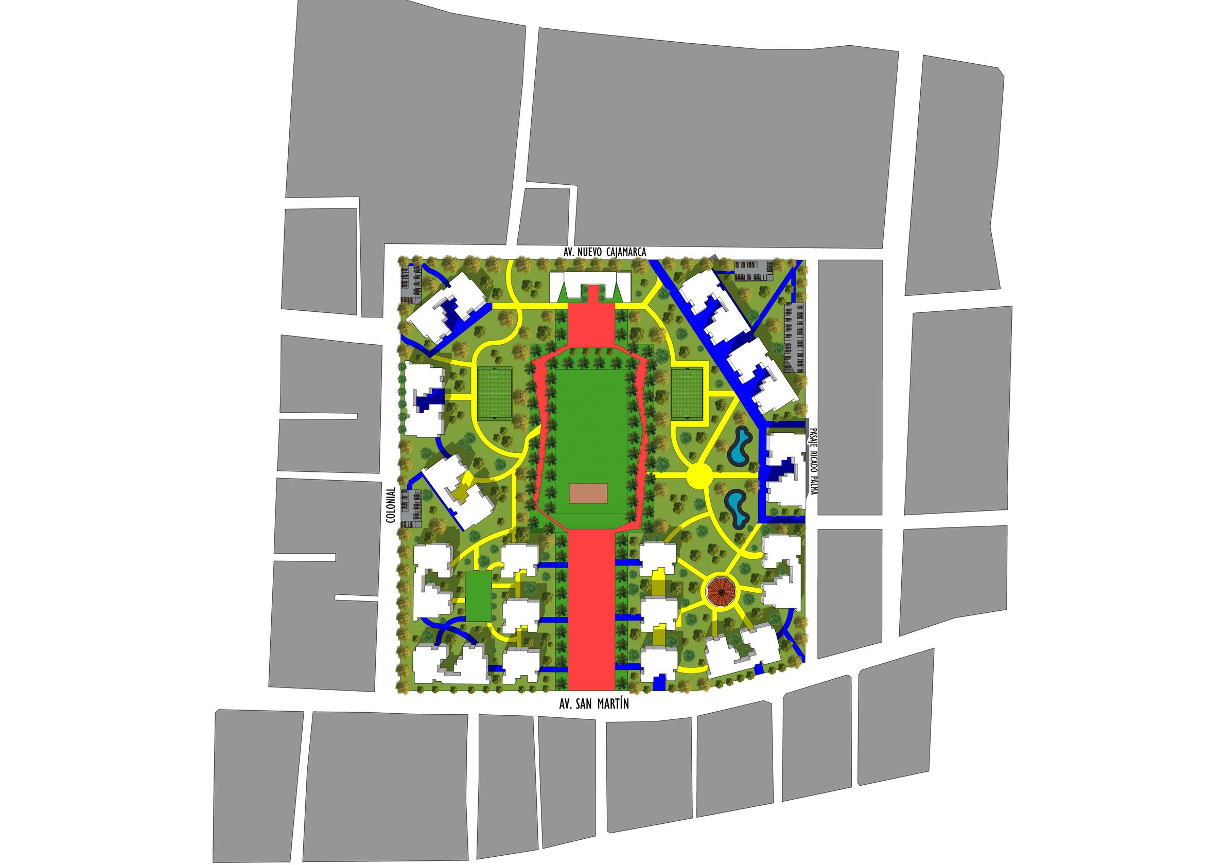 MICRO A A LEYENDA AV HUACALOMA AV NUEVA CAJAMARCA zonas verdes AREA HUACALOMA COLONIAL SAN MARTIN DE PORRAS CAMINO PEATONAL CORTE A - A