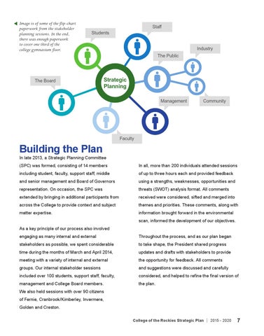We also held sessions with over 90 citizens of Fernie, Cranbrook/Kimberley, Invermere, Golden and Creston. College of the Rockies Strategic Plan ď ź 2015 - 2020