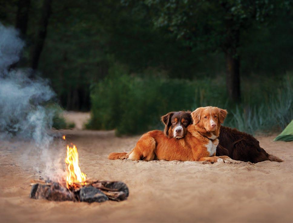 When you and your furry family are sitting around the campfire enjoying the company of friends, make sure they stay close by and don’t wander off. Vehicles, other animals (including wildlife) can lead to trouble. Easy access to people snacks and treats, and those forgotten leftovers thrown in the campfire can make them very sick!