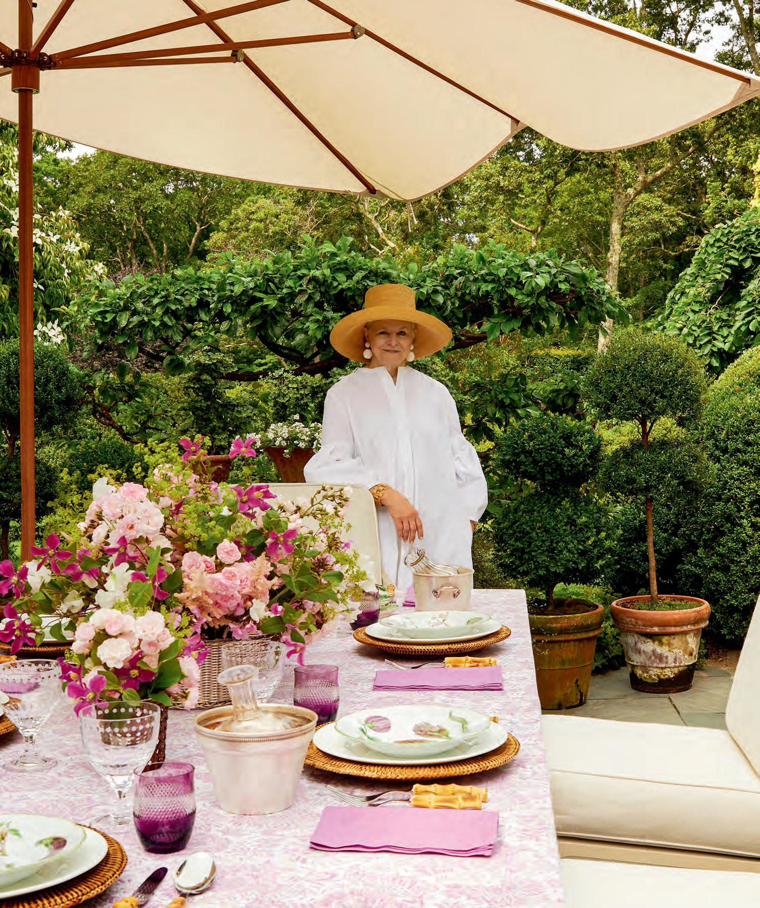 At her East Hampton home, Boxwood Terrace, Designer Charlotte Moss sets a stylish summer table in the great outdoors. by Clinton Smith photographs by Trevor Parker