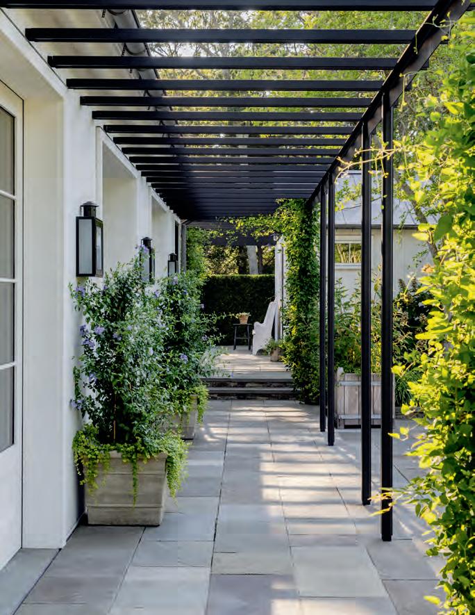 pergola adds a graphic sensibility to the pathway. See Resources