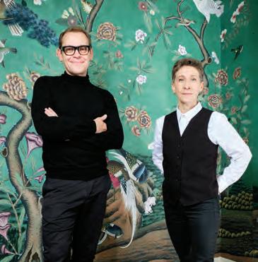 Partnering with designer Lizzie Deshayes, they created the firm (named after her great-grandparents) that for two decades has worked with Chinese craftspeople producing some of the finest bespoke, hand-painted, embroidered wallcoverings in the world. A new line of printed wallpapers was introduced this season. Married since they linked up creating Fromental, Tim and Lizzie live with their young daughter in a London flat with walls covered in some of their favorite patterns: Mishima, Travertine, Babinda, Kiku. fromental.com.