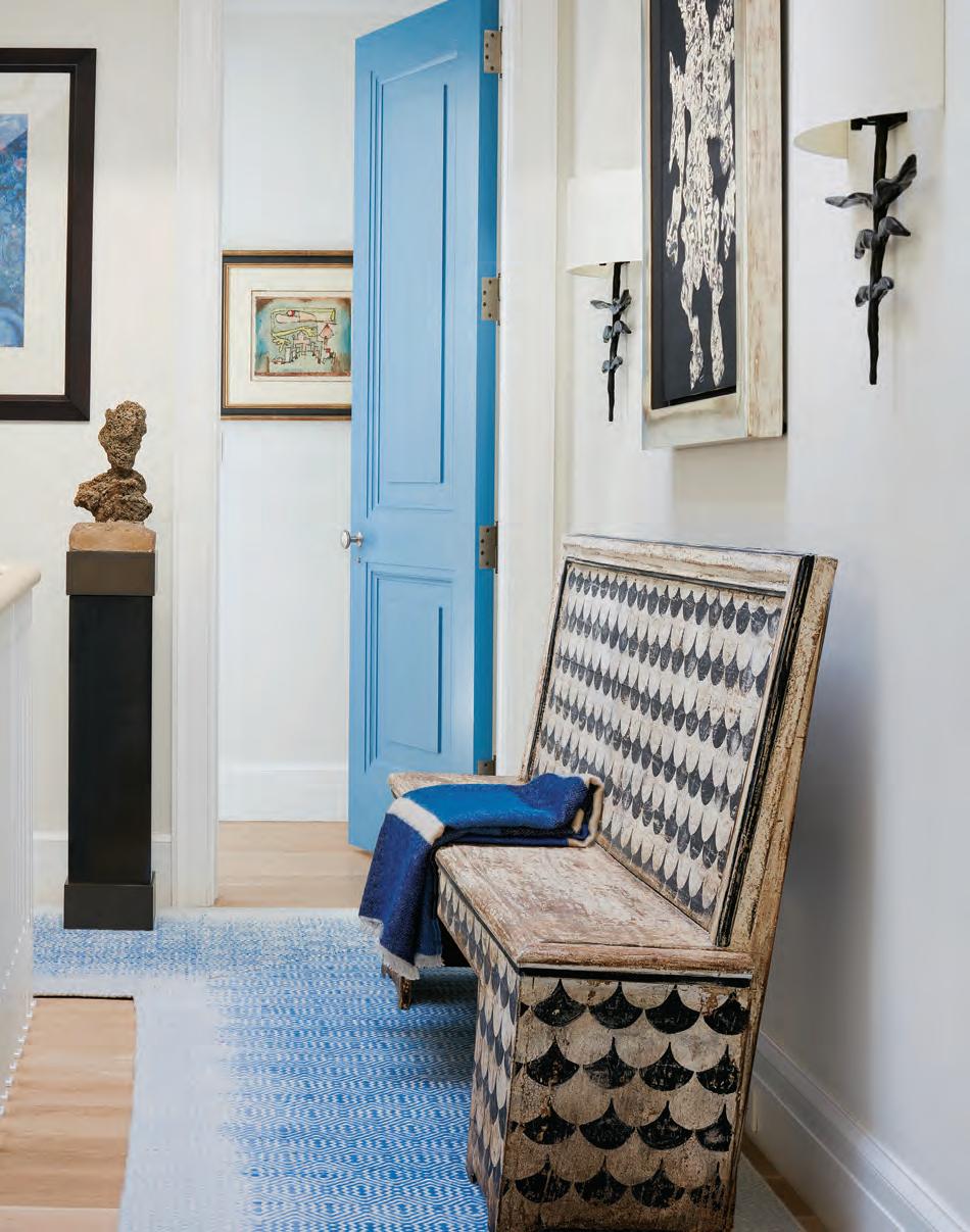 ■ I love a room with a surprise. Add something that grabs your eye, an unlikely piece of art or an ottoman covered in a fabric brought back from a recent trip.