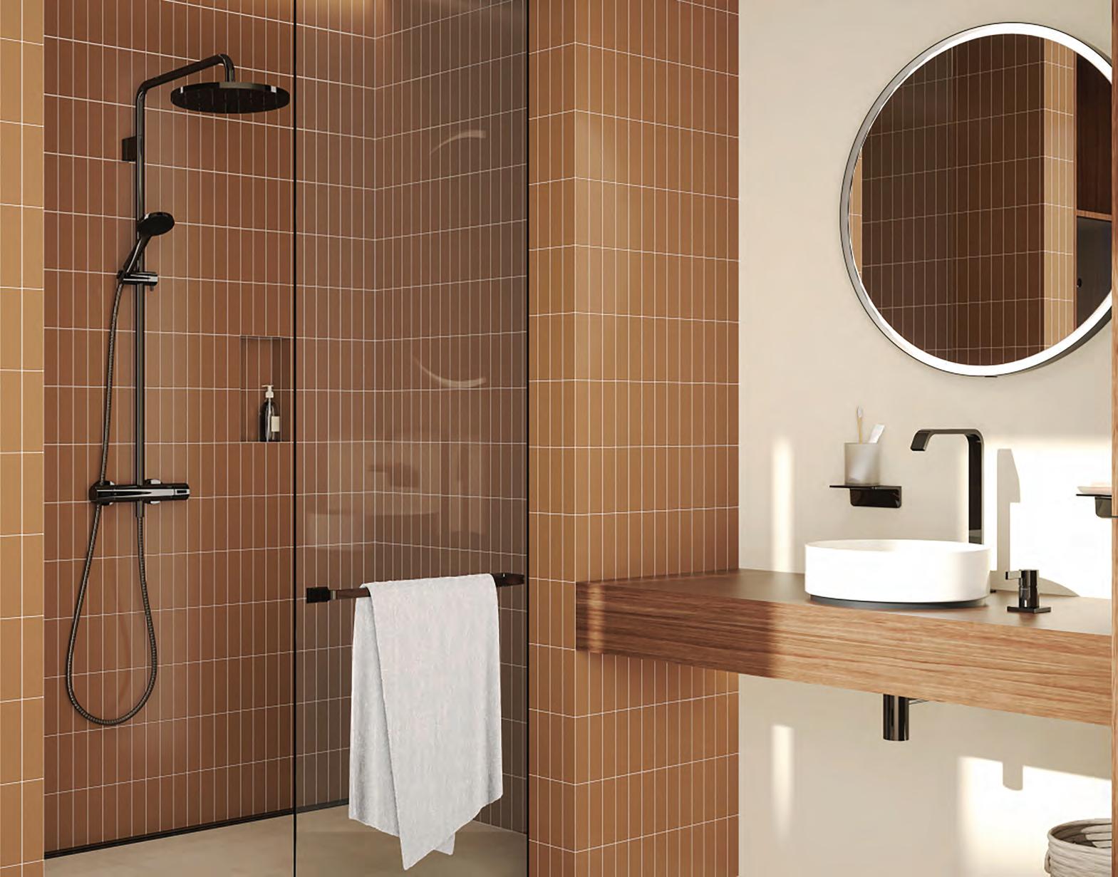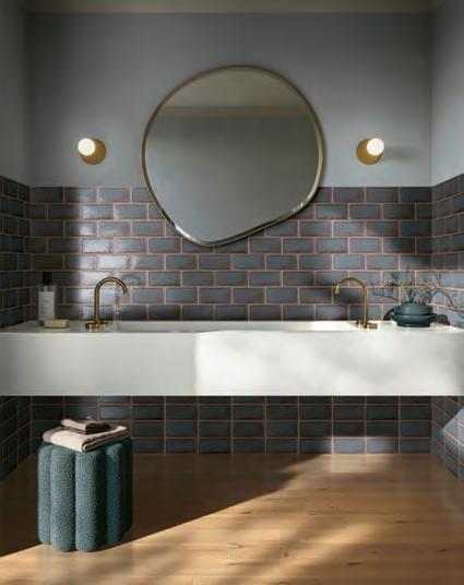 Design With Impact (clockwise from this photo) A historic schoolhouse home is filled with a spirited ambiance. Refined elegance balances with an industrial vibe in a bathroom and a dining area at an Irish Georgian estate.