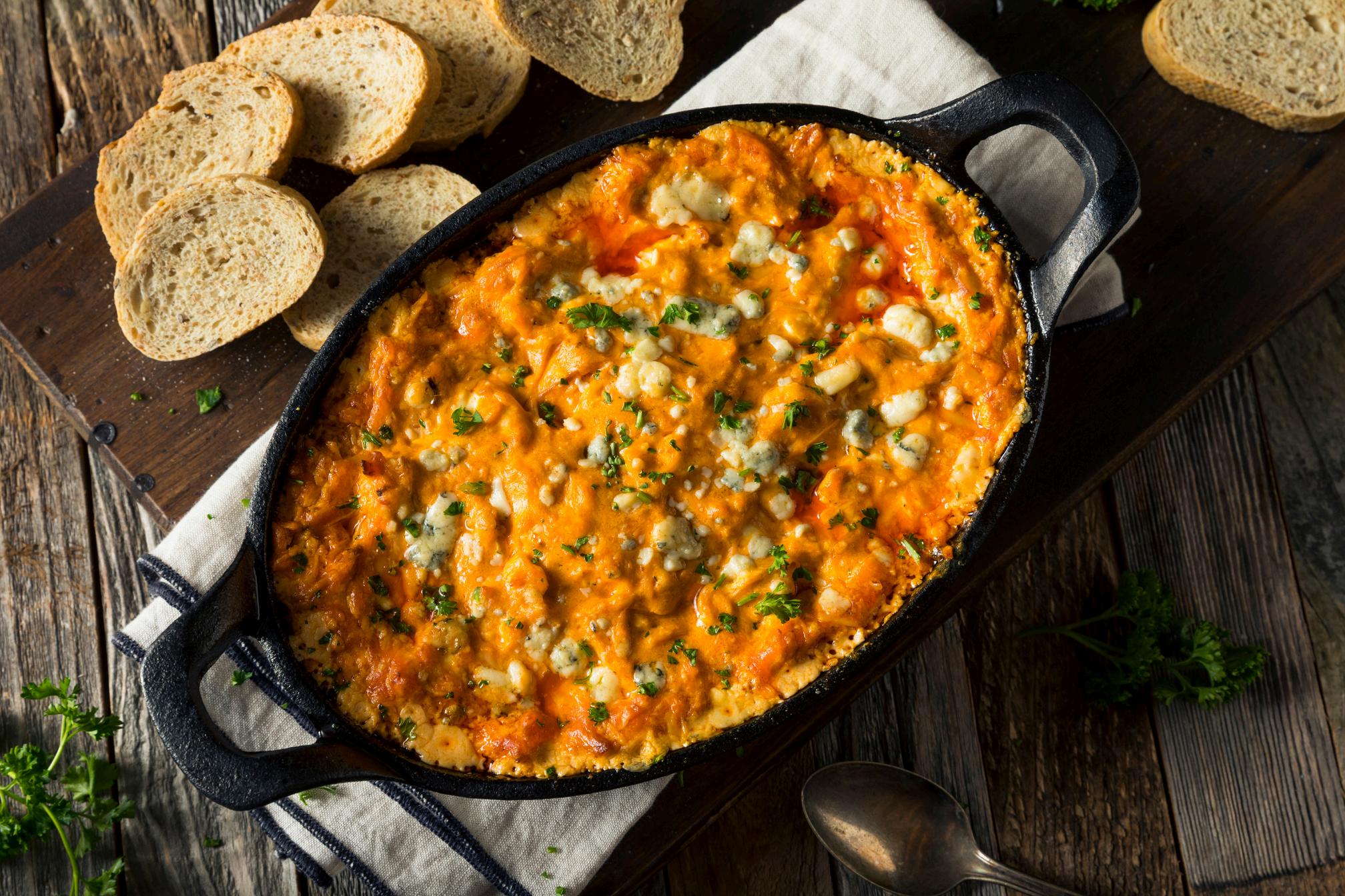 BuffaloChickpeaDip Thisisaquickandeasyglutenfreeandvegetarian dip Weusuallymakethisforgamenightsorparties becauseitismorefilling.It’salwaysahit.