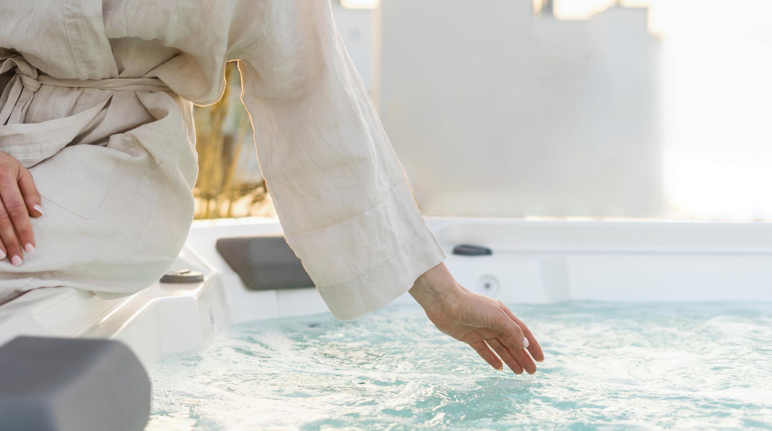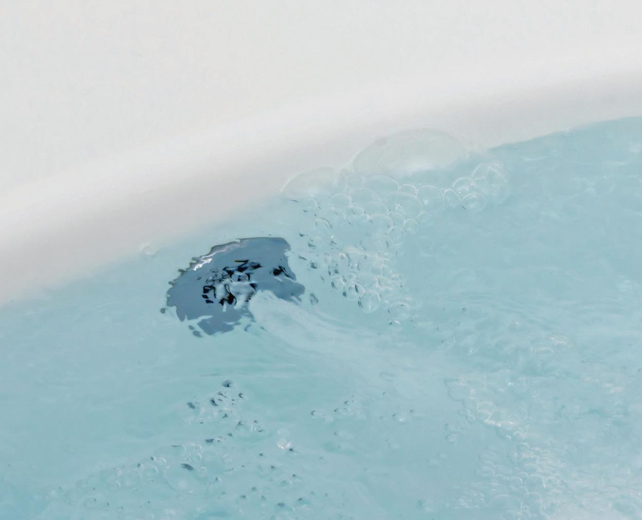 Gentle air bubbles rise from jets at the bottom of the tub, creating a soft, effervescent massage