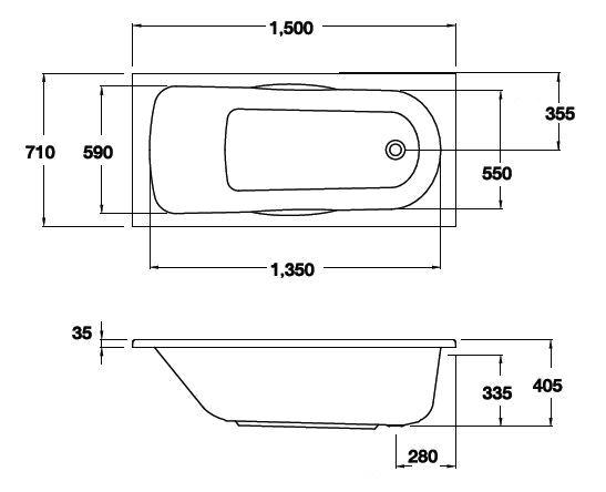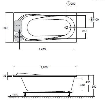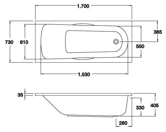 Bathtub with rectangular designed complementing sanitary ware. (Available in 2 size)