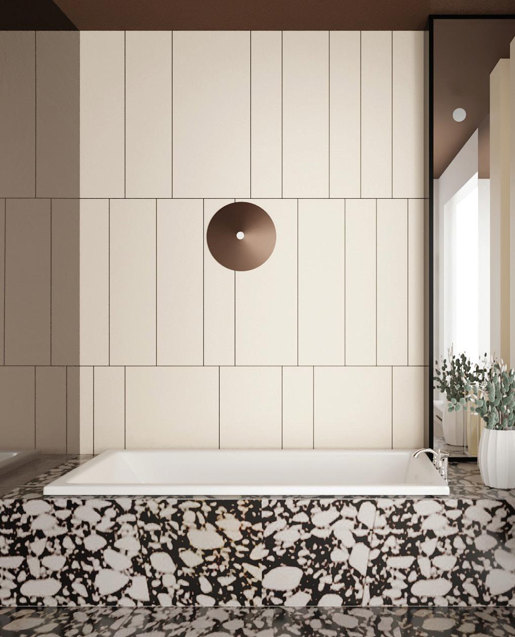 The bathtub’s organic form, with its flowing, natural curves and delicate edges, adds a sense of softness to the bathroom.