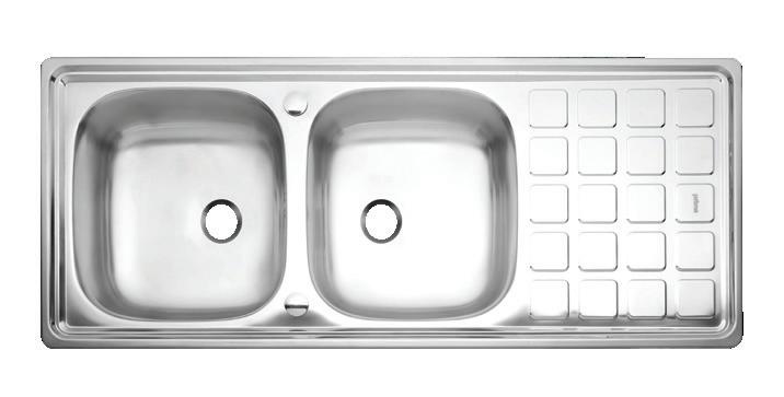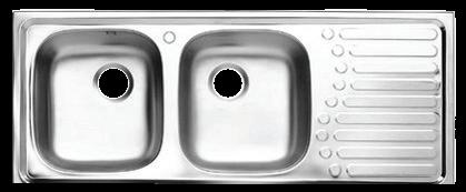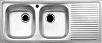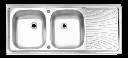 Double Bowl Stainless Sink (Type B Drain Stopper, 2 Faucet Holes, Side Drainboard, Dim.: 50 x 120 x 13 cm.)