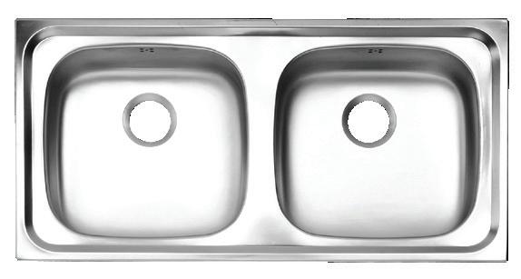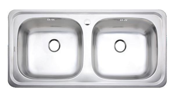 Double Bowl Stainless Sink (Type B Drain Stopper, 1 Faucet Hole, Side Drainboard, Dim.: 50 x 100 x 17 cm.)