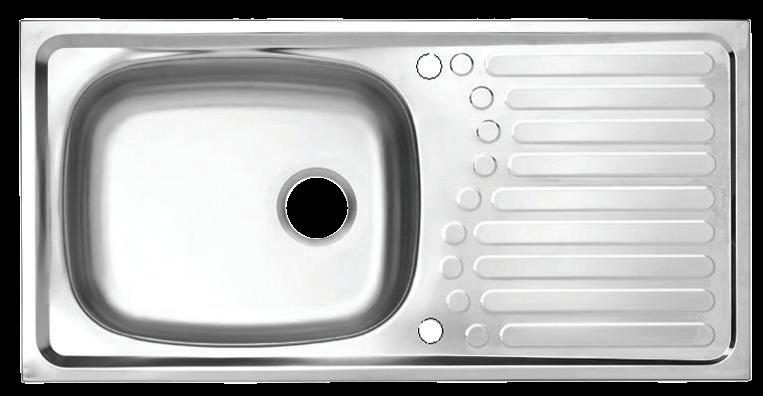 Single Bowl Stainless Sink (Type B Drain Stopper, 2 Faucet Holes, Side Drainboard, Dim.: 50 x 100 x 16 cm.).