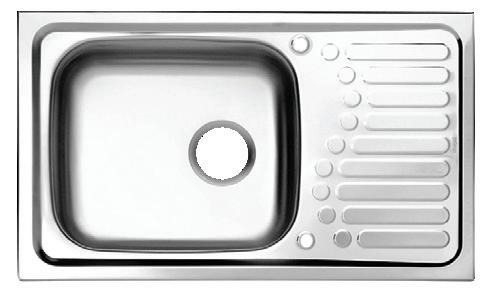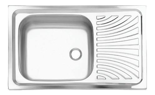 Single Bowl Stainless Sink (Type B Drain Stopper, 2 Faucet Holes, Side Drainboard, Dim.: 45 x 75 x 16 cm.).