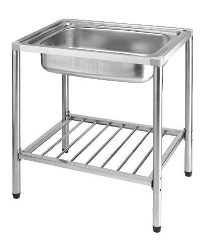 Freestanding Single Bowl Stainless Sink (Type B Drain Stopper, Dim.: 47.6 x 57.6 x 80 cm.)