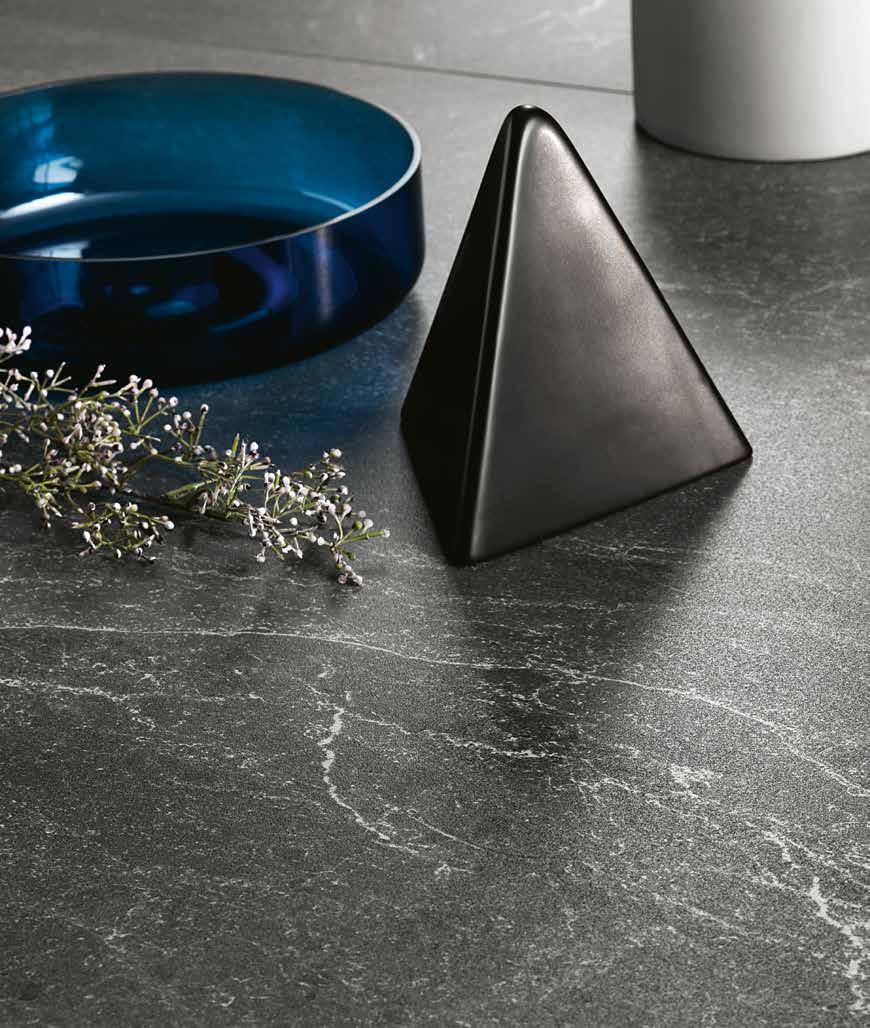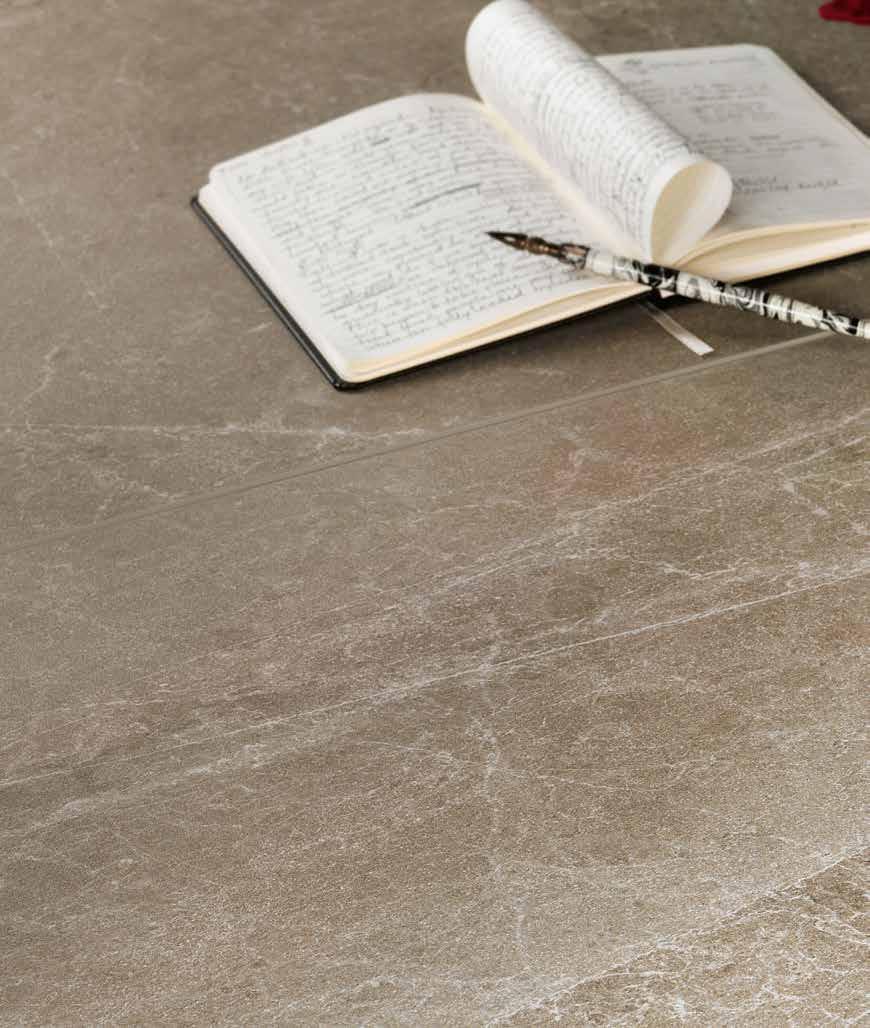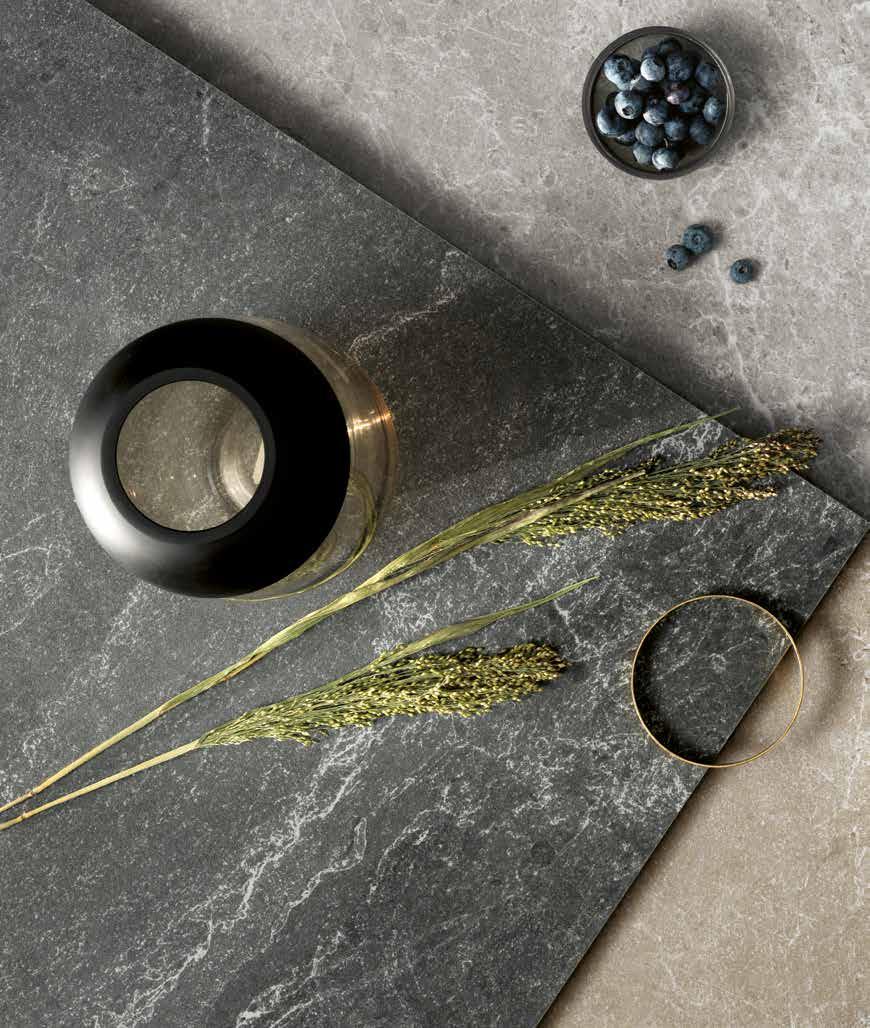 Amalgamati in un’unica tessitura raffinata, convivono diverse texture derivanti da più pietre naturali: sulla trama tipica dell’ardesia, si innestano filigrane marmoree più nette e inclusioni granulari tipiche dei limestone. Il risultato è un effetto pietra modellato sulla sensibilità contemporanea: una sintonia che va oltre il gusto e l’estetica, e arriva a immaginare spazi concreti dove vivere il mirabile connubio di bellezza e qualità.