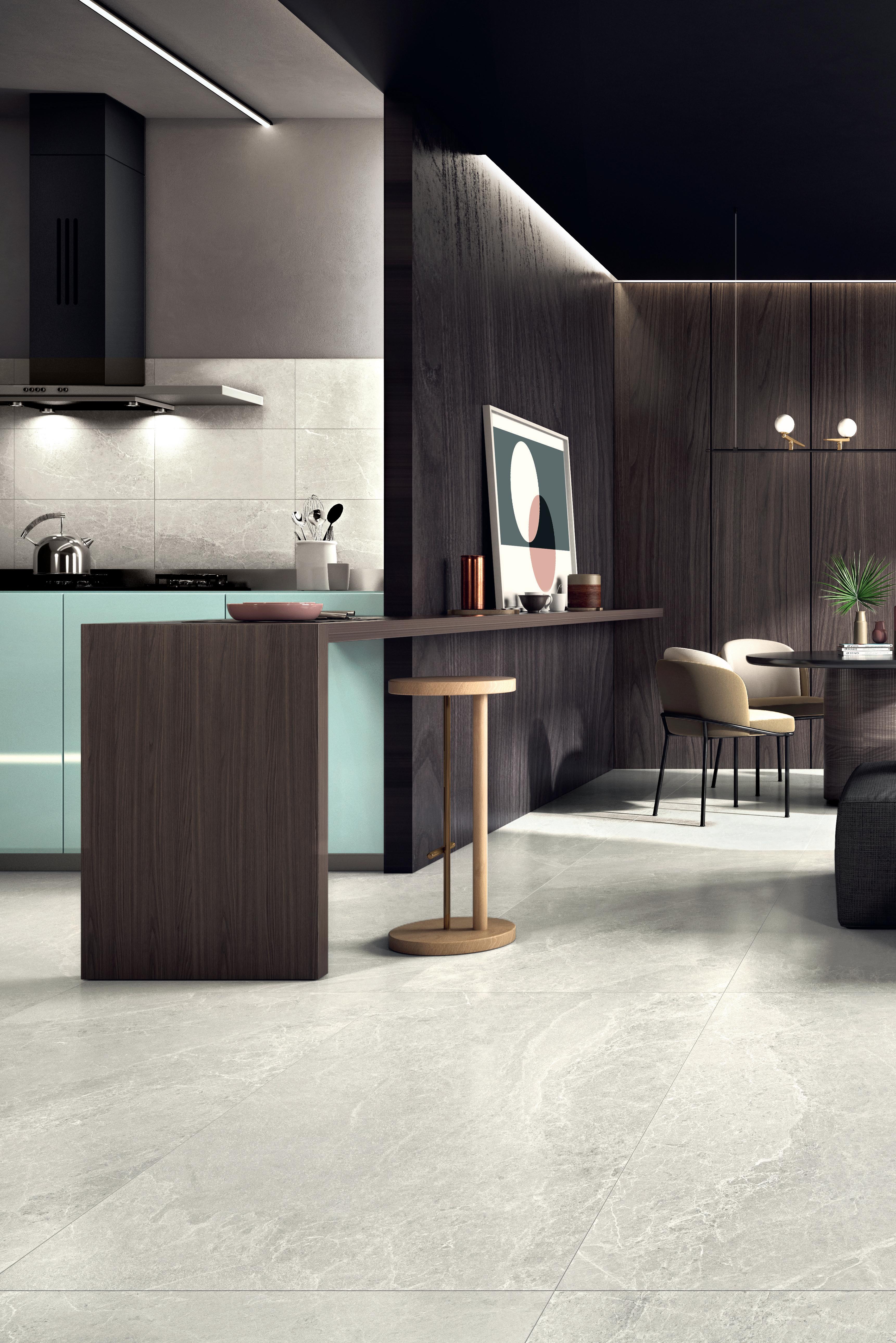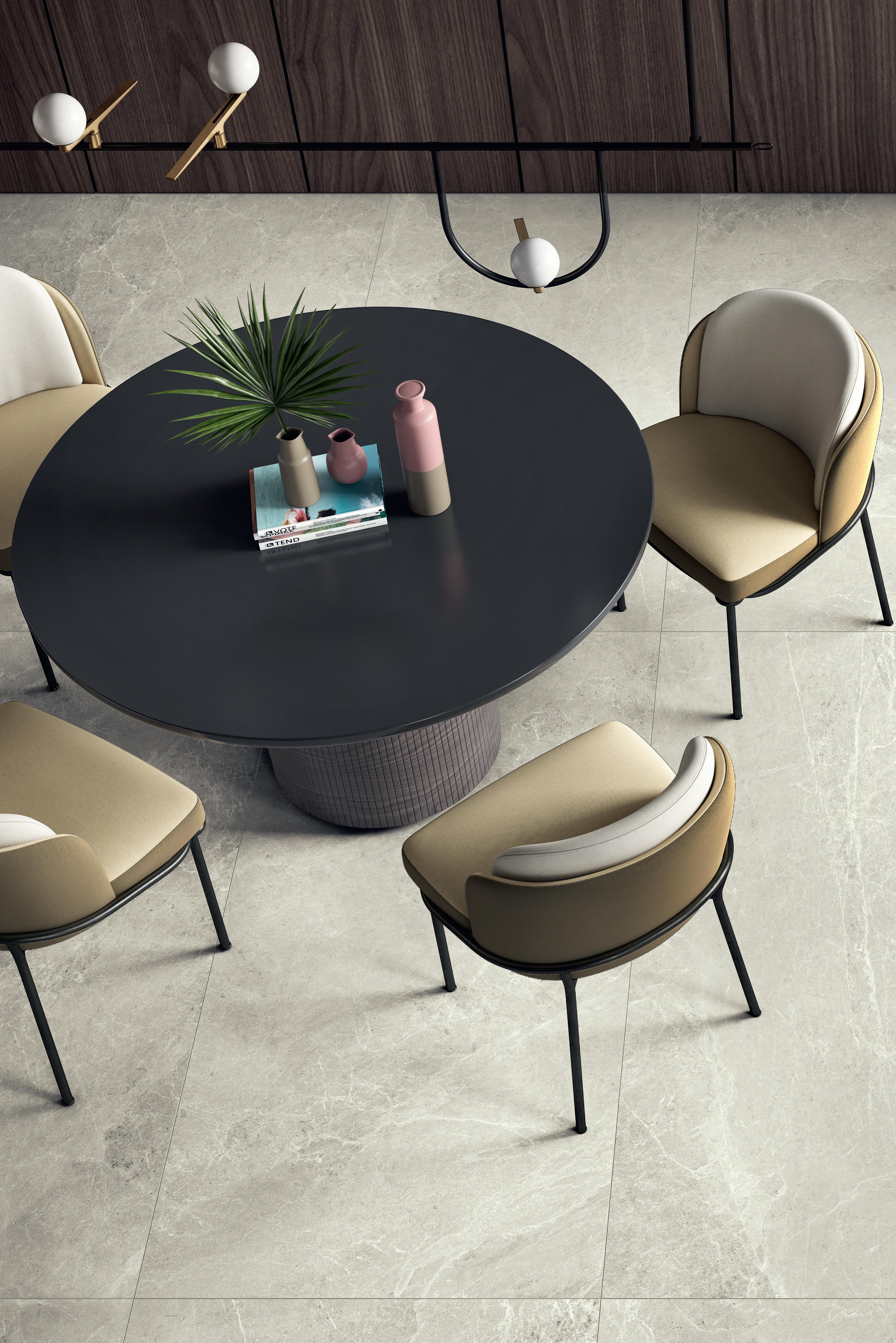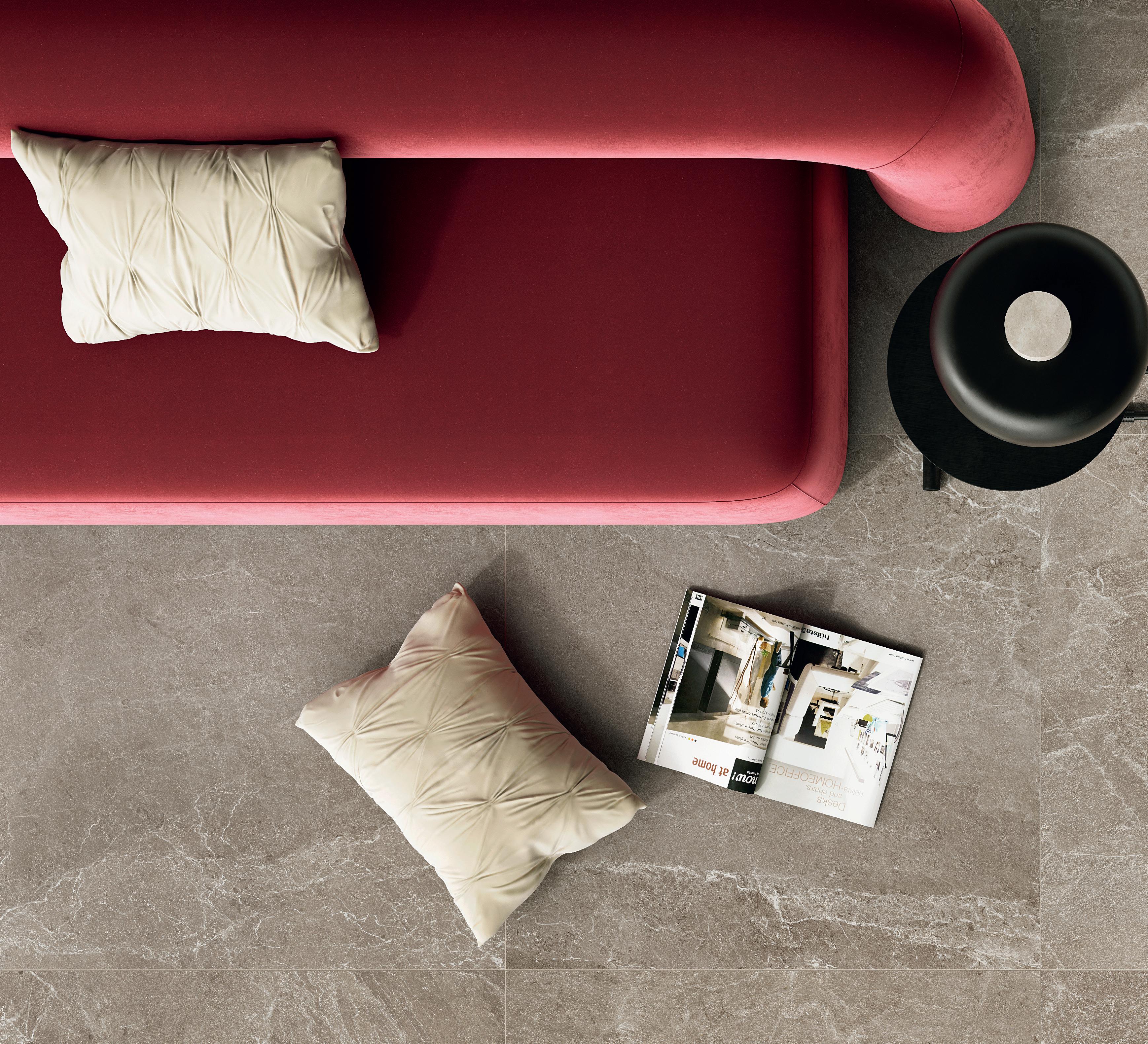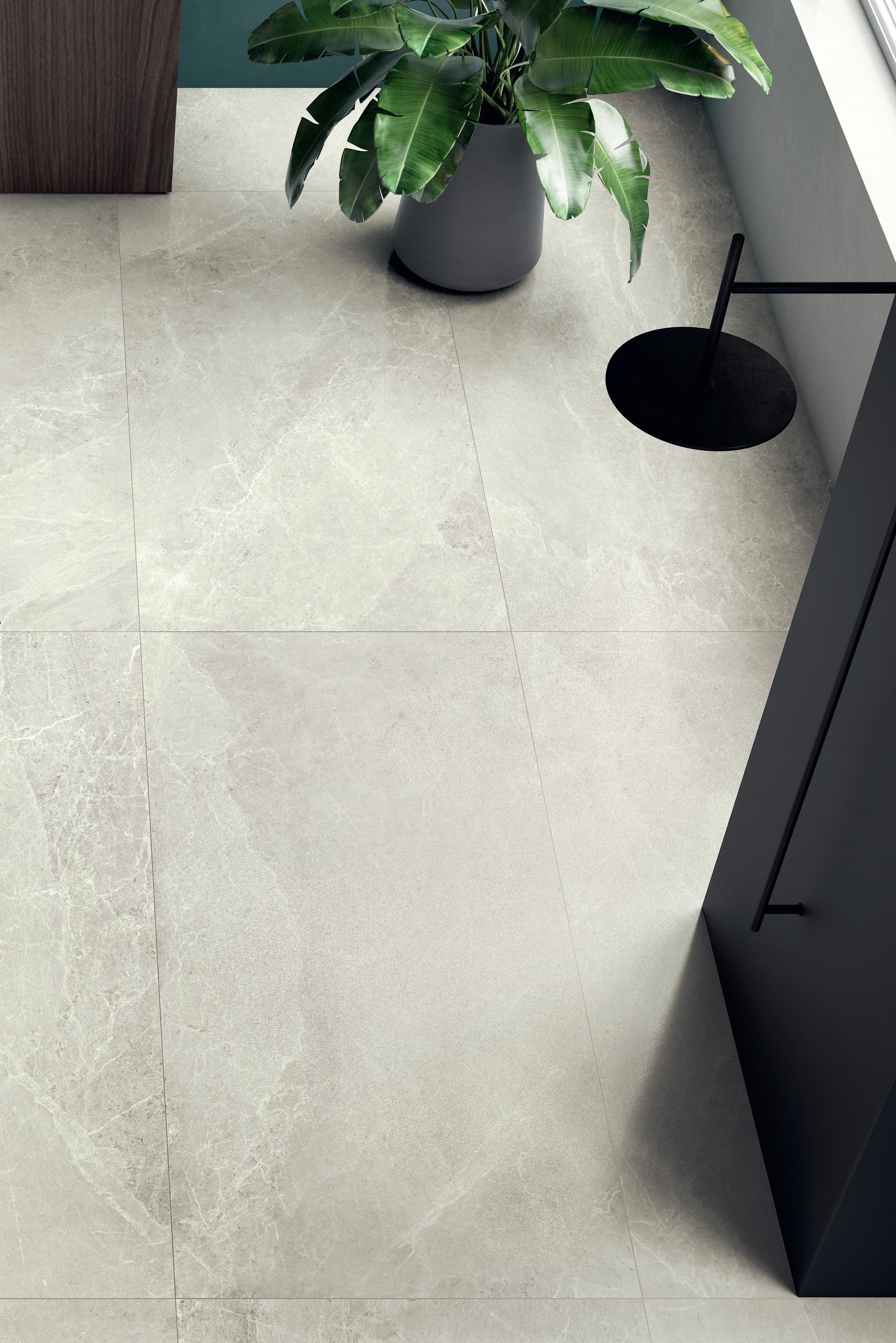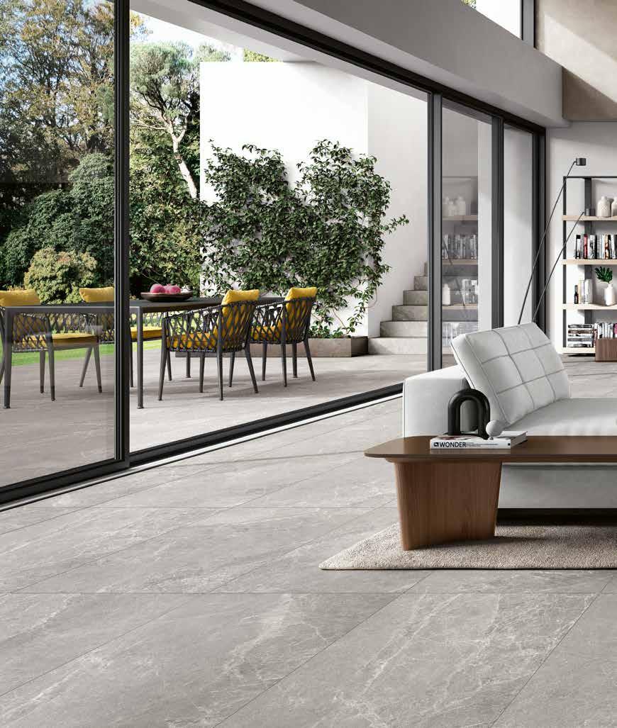 Woven together into a single and elegant fabric, multiple textures come together, derived from various natural stones: distinct marble filigree and granular inclusions typical of limestone are grafted onto a classic slate surface. The result is a stone-look shaped by modern sensibility: a synchronicity that goes beyond taste and aesthetics, ultimately creating a vision of tangible spaces in which to experience this striking communion between beauty and quality.