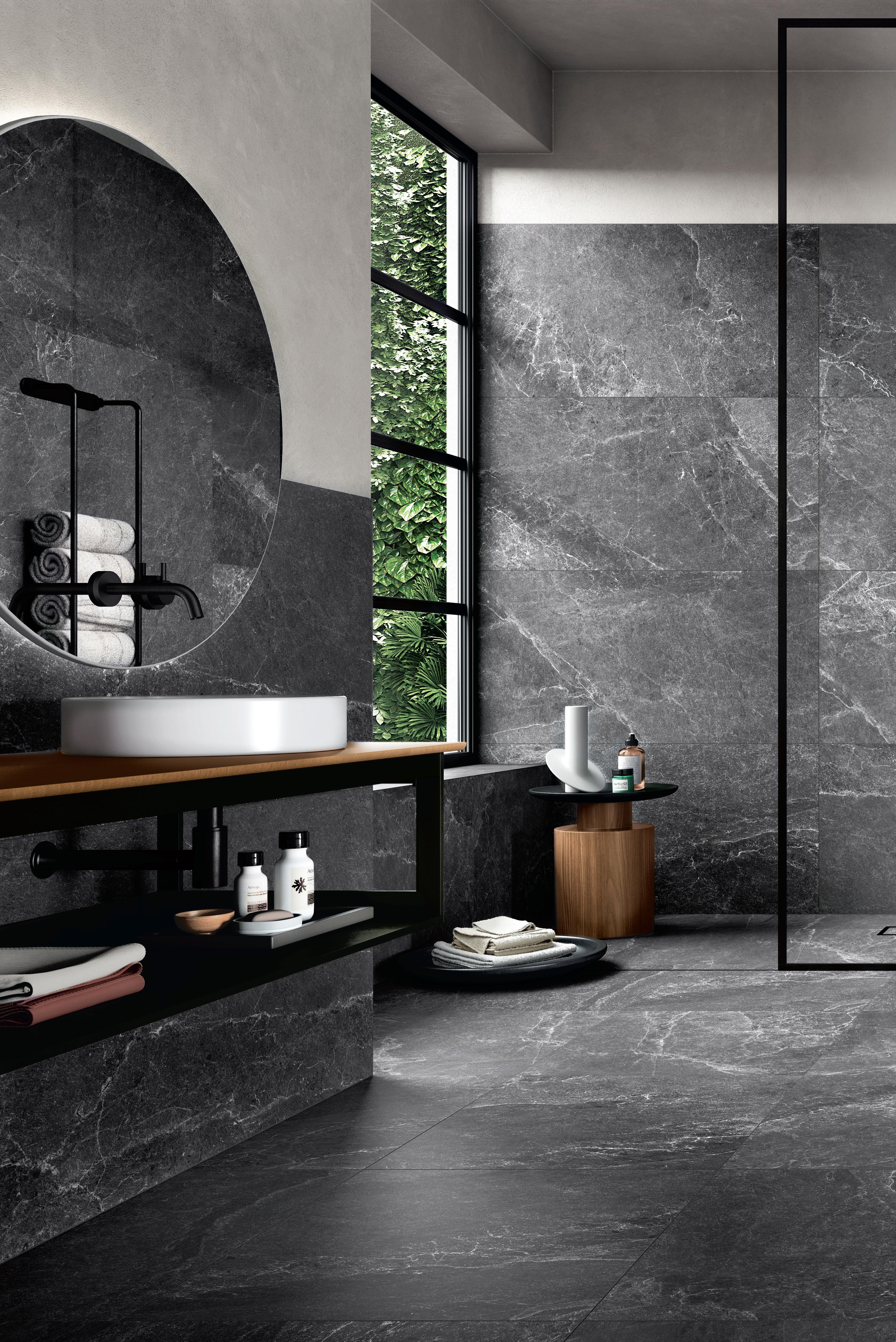 PAVIMENTO/FLOOR: GRAPHITE LAPPATA 60X60 | 24”X24” - RIVESTIMENTO/WALL: GRAPHITE LAPPATA 60X120 | 24”X48”
