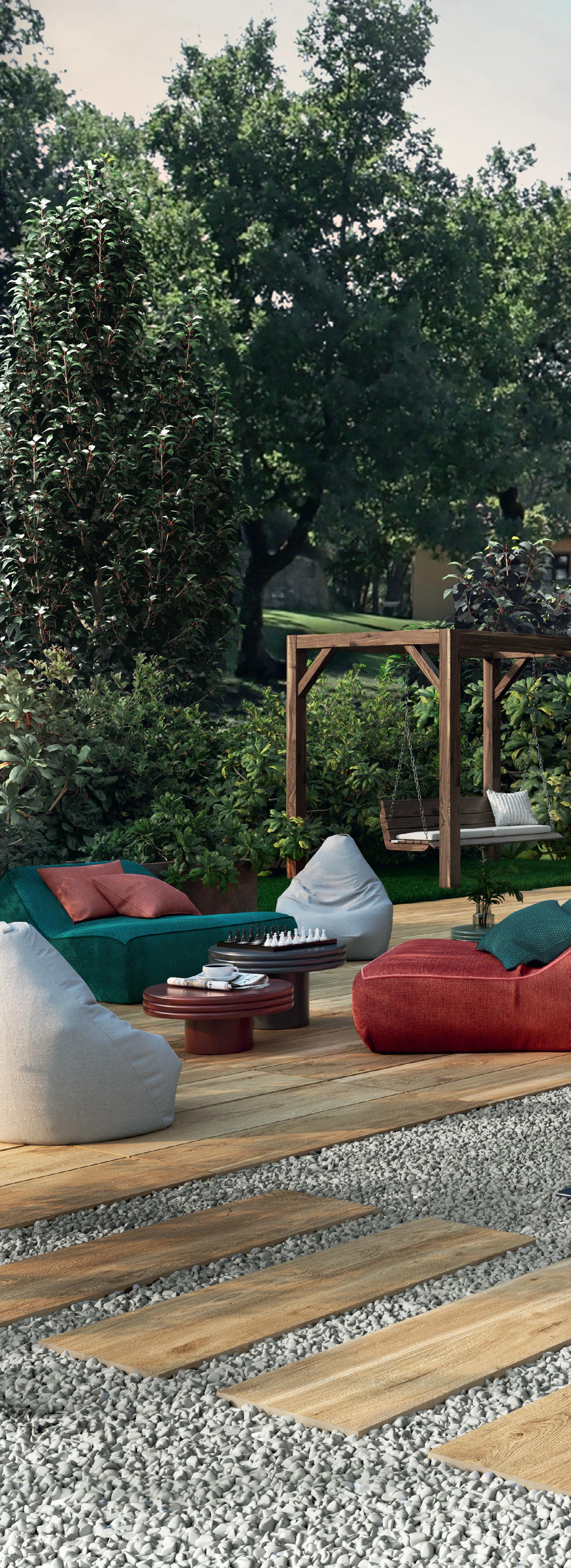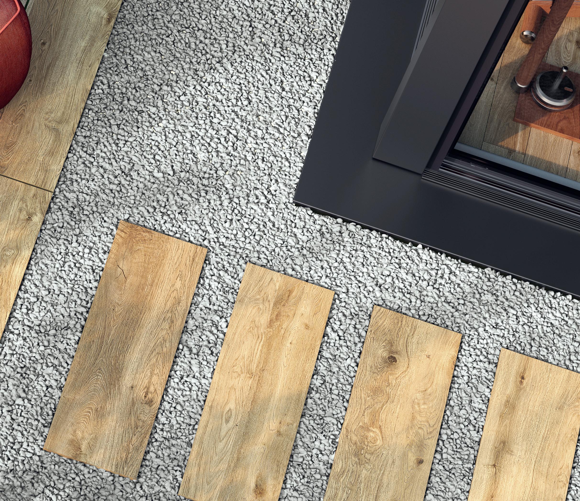 Rustic is a finish specifically designed for the 40x120 cm, 20 mm thick, plank format. The exceptional slip-resistance of this outdoor surface is achieved by accentuating the natural texture of the wood grain, thus maintaining its realism.