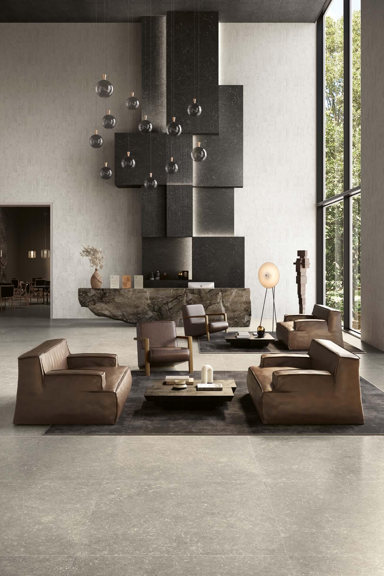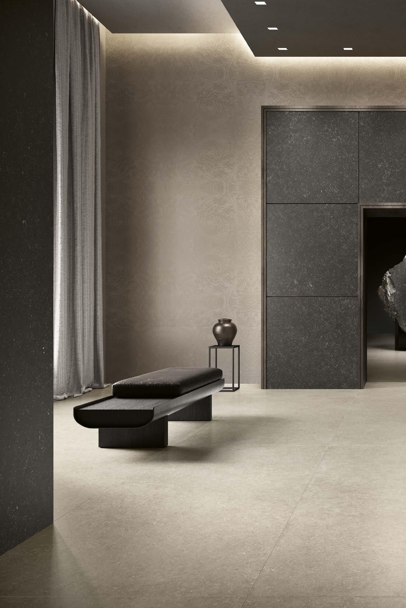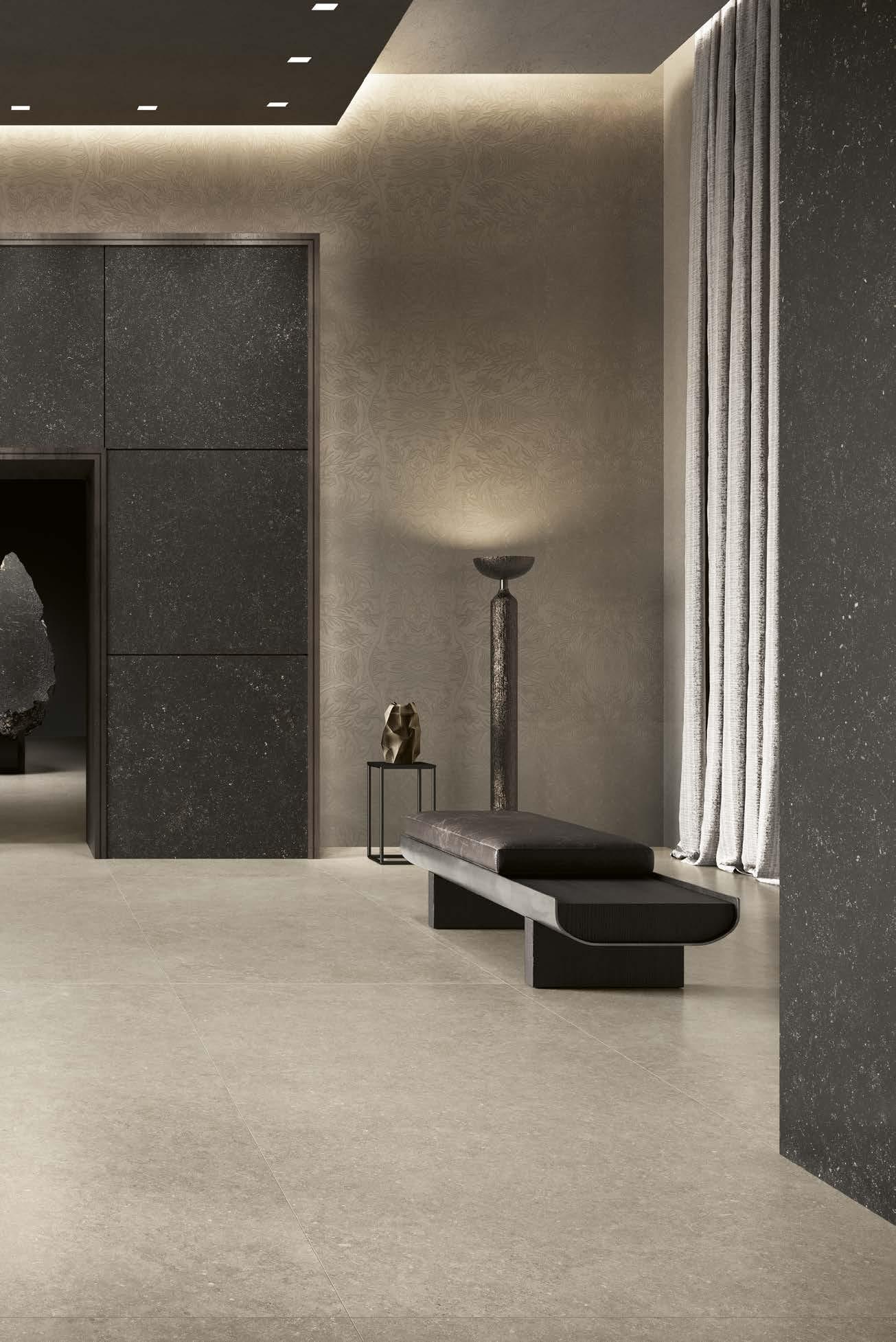 With Legend, stone shapes a boundless architectural language that flows seamlessly across floors, wall coverings and volumes within a single aesthetic breath.