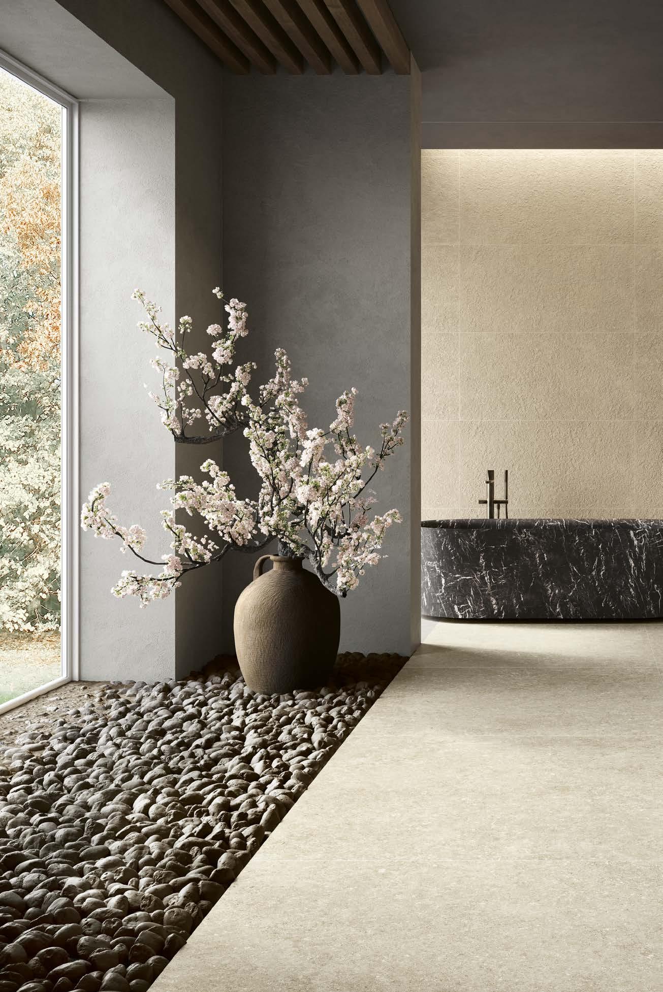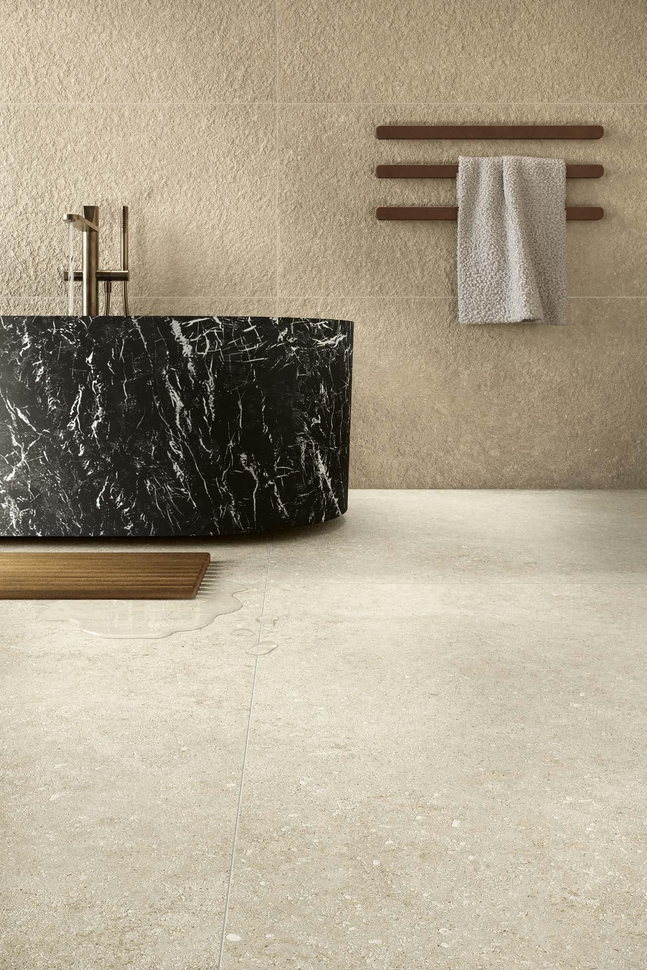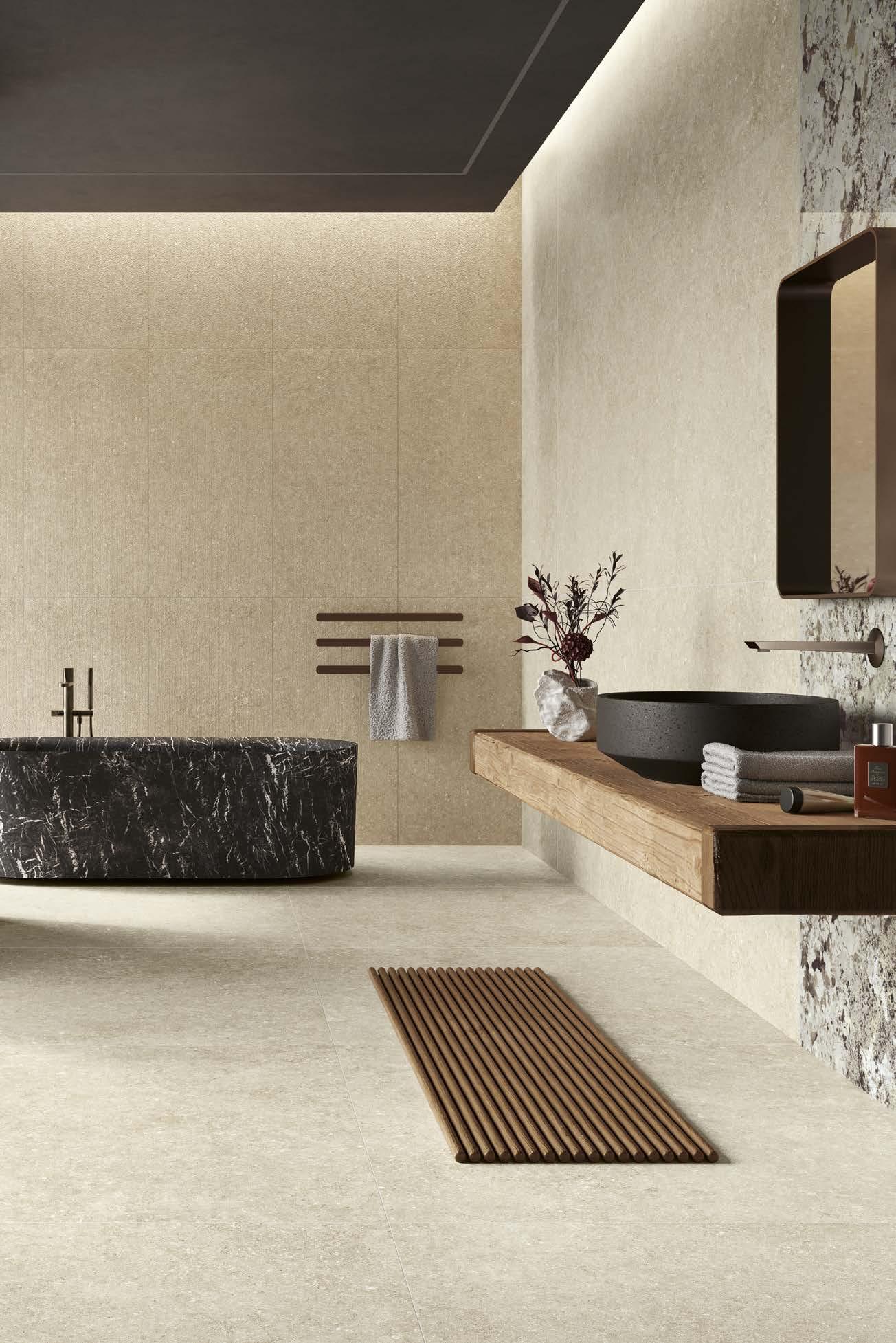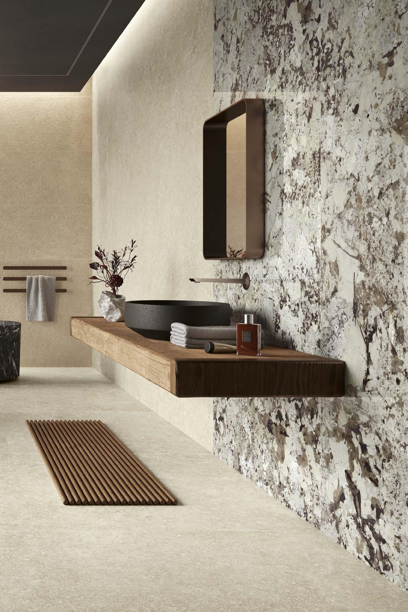 With Legend, stone shapes a boundless architectural language that flows seamlessly across floors, wall coverings and volumes within a single aesthetic breath.