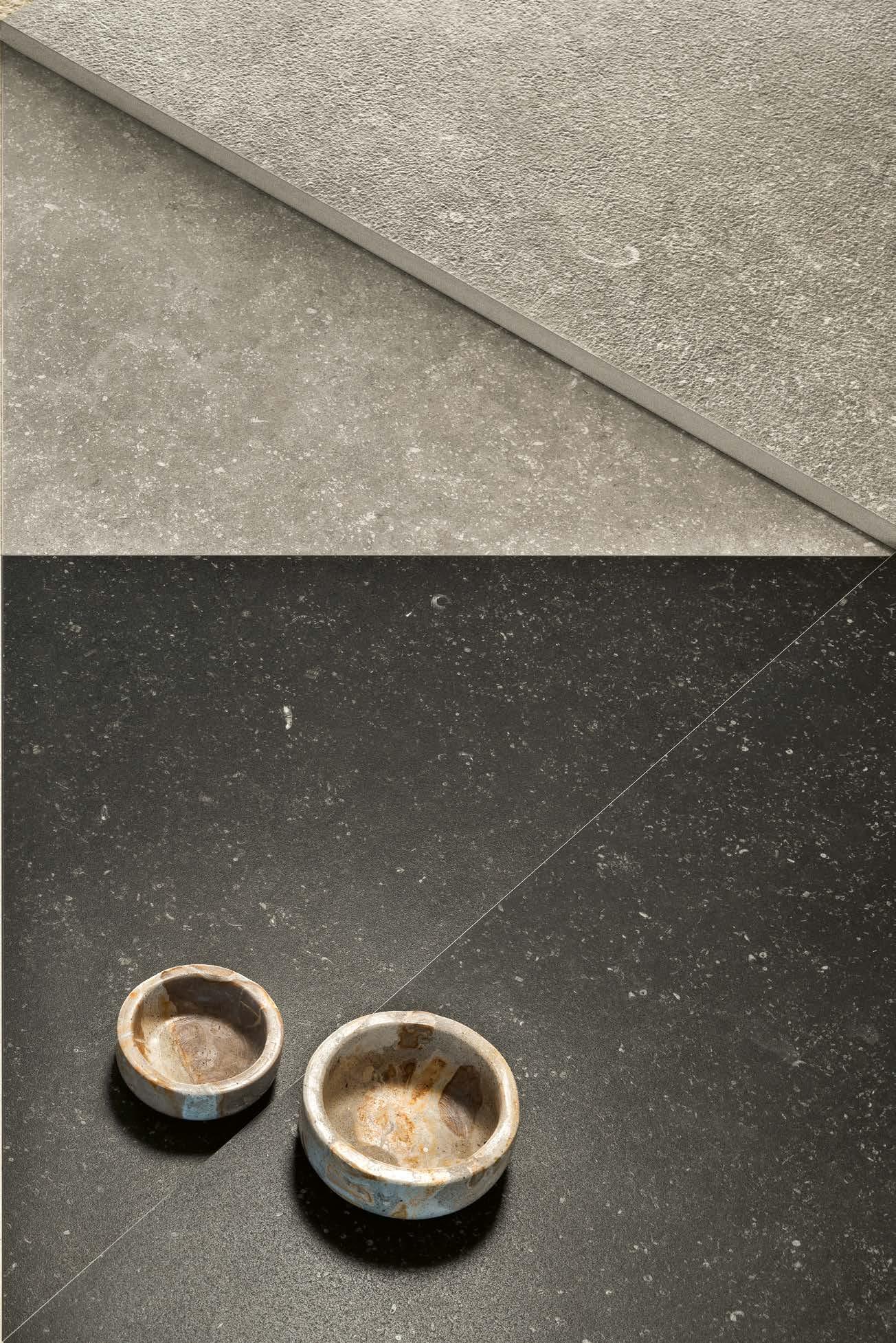 Legend reinterprets the essence of stone, the authentic expression of a precious geological heritage. Inspired by Belgian Pierre Bleue, it preserves its sedimentary traces and translates them into a contemporary, essential and rigorous aesthetic.