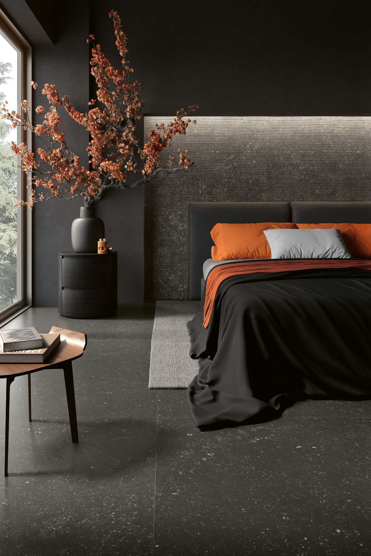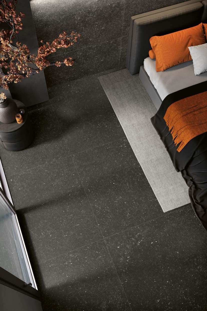Blazed è una finitura dalla struttura materica e raffinata, ispirata alle lavorazioni fiammate delle pietre naturali.