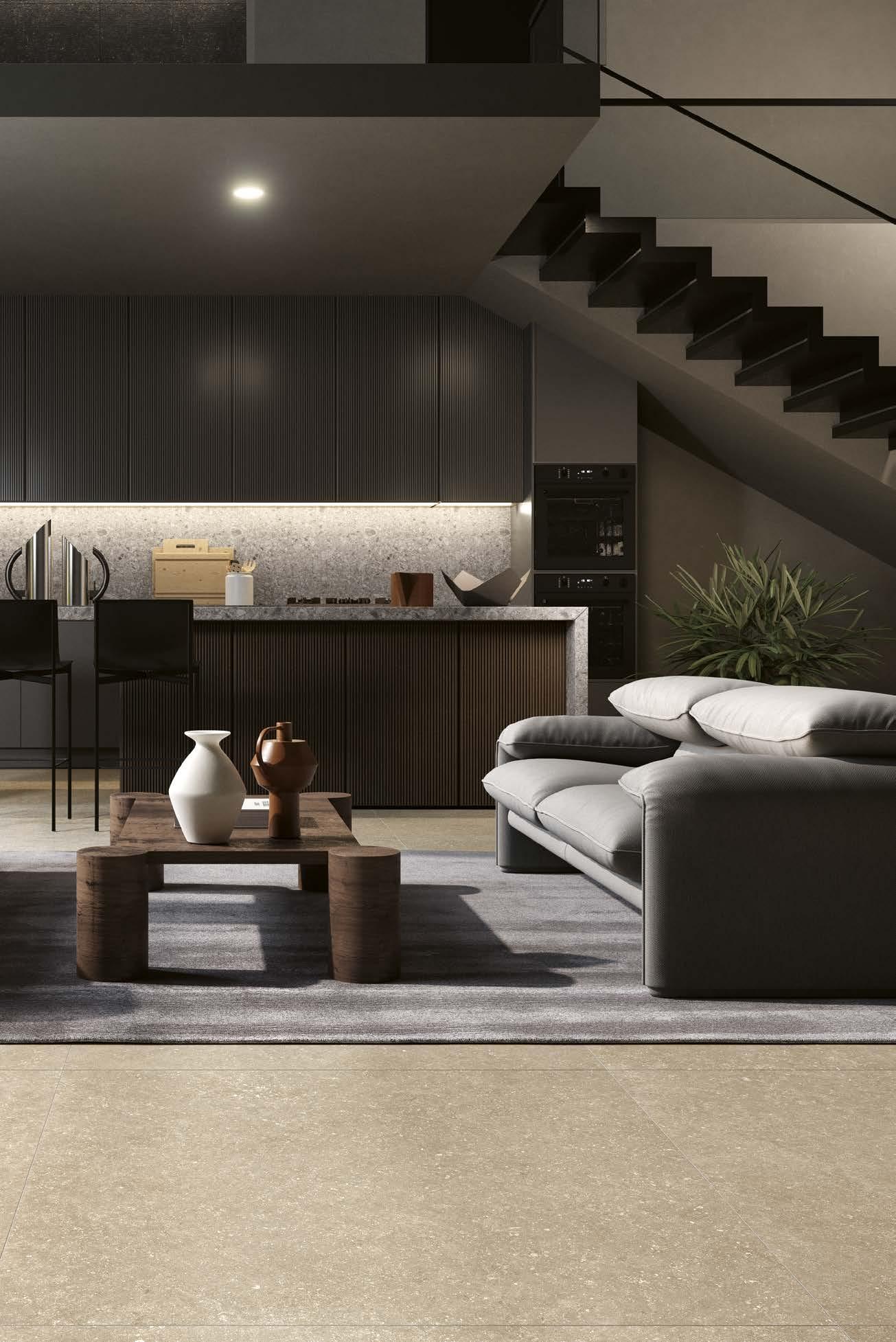 Con Legend la pietra dà forma a un linguaggio architettonico senza confini, che attraversa pavimenti, rivestimenti e volumi in un unico respiro estetico.