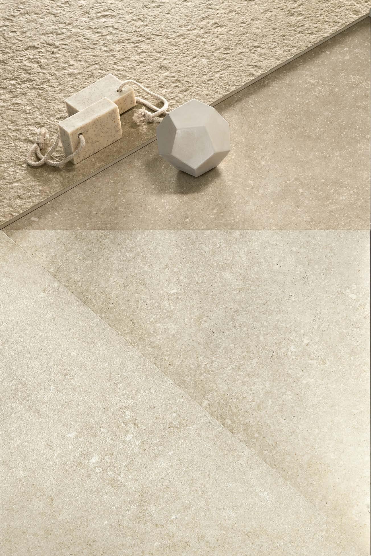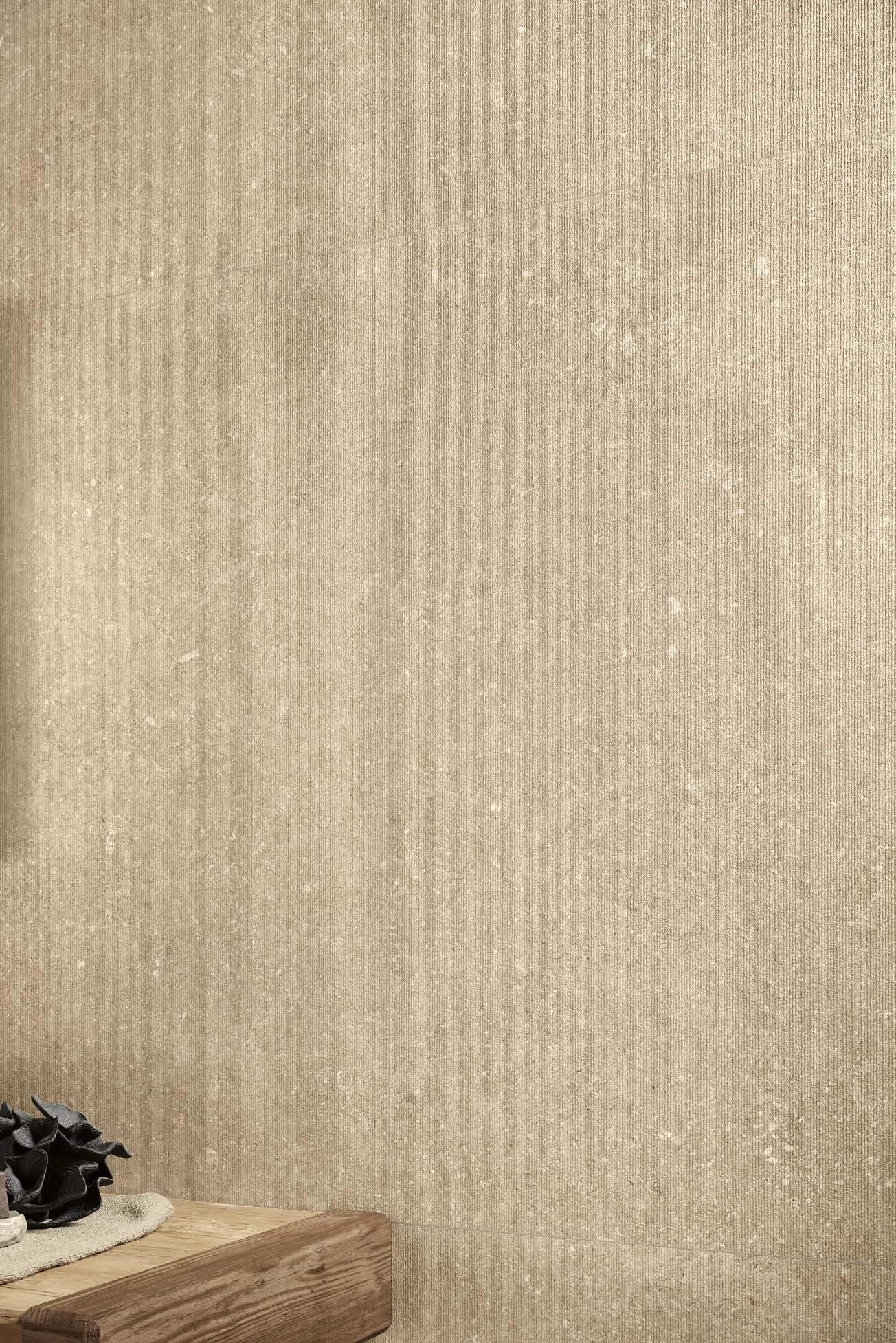Grazie alla sua origine calcarea sedimentaria, Legend custodisce frammenti di un tempo profondo che affiorano in stratificazioni naturali, fini venature tono su tono, tracce minerali e segni di crinoidi fossili. Una ricchezza materica autentica che trasforma la memoria geologica in valore progettuale.