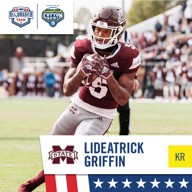 Tulane junior running back Tyjae Spears earned the J. Curtis Sanford Trophy as Offensive Most Valuable Player on the strength of a Cotton Bowl Classic-record tying four rushing touchdowns and 205 rushing yards, the second-most yards on the ground in a New Year’s Six bowl game. Tulane senior linebacker Dorian Williams was awarded the Felix R. McKnight Trophy as Defensive MVP after recording a career-high 17 tackles, tied for the thirdmost total tackles in a New Year’s Six bowl game.