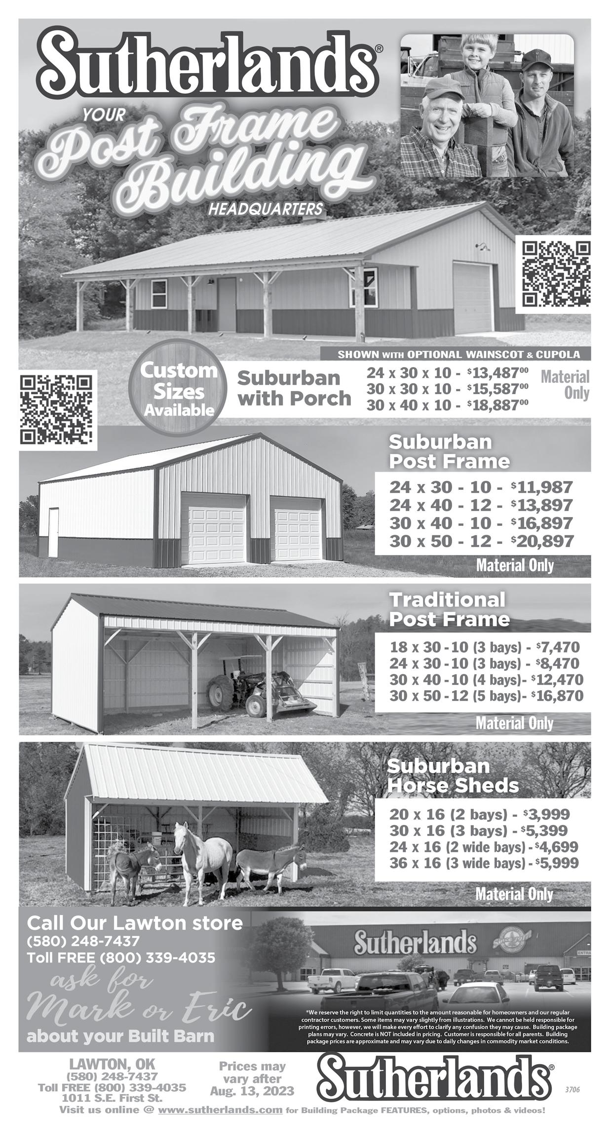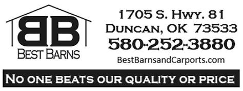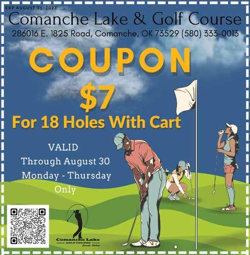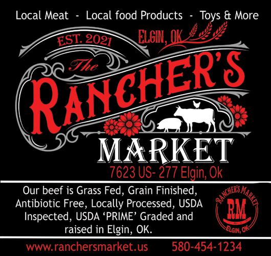 28, 2023 Tuesday, November 7, 2023 Friday, February 2, 2024 Friday, April 5, 2024 METAL BUILDINGS METAL ROOFING PURLIN TUBING 1706 N. 2nd Street, Marlow, OK Metal Building Components for Commercial, Residential, Farm, & Ranch 580-658-1156 M&M Trailer Service, LLC Is Your Trailer Road Safe? 580-658-6510 280276 W. HWY 7, Marlow, OK mmtrailerservice@yahoo.com HITCHES •Gooseneck •Receiver •5th Wheel• See us for all your trailer part, hook-up & flooring needs! Authorized dealer for Shelby Trailer Flooring For Inquiries: mmtrailerservice@yahoo.com Authorized dealer for Shelby Trailer Flooring For inquires: mmtrailerservice@yahoo.com ●Gooseneck ●Receiver ●5thWheel 580‐658‐6510 166494 Heffington Rd, Marlow, OK mmtrailerservice@yahoo.com See us for all your trailer parts, hook-ups & flooring needs!! ●Repairs, Maintenance ●Brakes, Lights, Wiring ●Sand Blast & Paint ●DOT Inspec�ons ●Hook‐ups ●Floors– Shelby X‐Lug, Tongue & Groove, Plank or Wood •Repairs, Maintenance •Sand Blast & Paint •Brakes, Lights, Wiring •DOT Inspections •Hook-ups •Floors- Shelby X-Lug, Tongue & Groove, Plank or Wood REDDIRT FENCING FARM & RANCH FENCING Wire Fencing Pipe Fencing Corrals Gates Marlow, OK Boyd Nunn OWNER 580-641-0377 k LARGE & SMALL ANIMAL k GROOMING k BOARDING k QUALITY PET FOODS HOURS M, T, W, F: 7:30 - 5:30 TH & SAT: 7:30 - 12:00 John Rector, DVM Comanche, OK Services Animals Lawton Farmers Market Saturdays 8:00 a.m.-1:00 p.m. 77 SW 4th St. A year-round market located in the heart of downtown Lawton, Oklahoma. For vendor inquiries please call: Cindy Nocton (580) 678-9472 LawtonFarmersMarket.com Your Quality Electric Utility www.cottonelectric.com