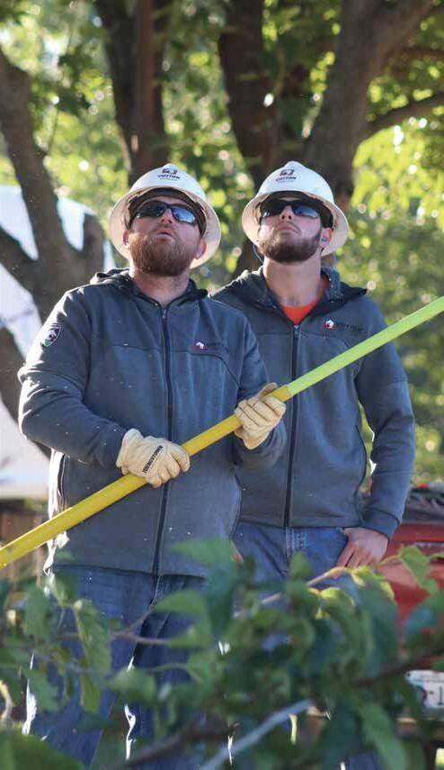 Besides working around high-voltage electricity, crews are on alert for wild animals, weather elements, falling trees and fast-moving vehicles. Please note: If you ever drive past one of our crews, please do so slowly. Also, rest times for eating and sleeping are vital to their safety.