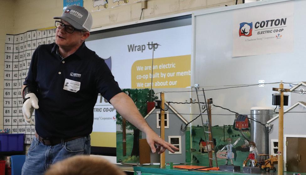 2023 2022 Total Amount Billed/Accrued $6,369,222 $6,982,746 Cost of Purchased Power 4,182,886 4,736,975 Taxes 133,550 157,174 Total Operating Expense Per Mile 1,117 1,217 Average Farm and Residential Bill 151 169 Average Farm and Residential kWh 1,140 1,299 Total Meters Billed (farm, residential) 19,202 19,181 Miles Energized 5,256 5,225 Density Per Mile 3.65 3.67 New Service Connects YTD 105 98 Services Retired 34 24 Published Monthly at Walters, Oklahoma By Cotton Electric Cooperative, Inc. Jennifer Meason CEO Shane Bowers Vice President Zach Young Director Carli Eubank Communications Specialist Cotton Electric Cooperative, Inc. Board of Trustees Shan Files, Velma, President Brian DeMarcus, Meers, Vice President Steven R. Robinson, Cache, Sec./Treas. Tony High, Walters, Asst. Sec./Treas. Ken Layn, Marlow Clifford Dunham, Chattanooga Todd Clark, Duncan Nichole Scott, Central High “Cotton Electric Current” (USPS #134-020) is published monthly by: Cotton Electric Co-op, 226 North Broadway, Walters, OK 73572 Periodicals Postage paid at Lawton, OK 73501-4649 Postmaster Send #3579 To The Cotton Current 226 North Broadway Walters, OK 73572 This institution is an equal opportunity provider & employer. The Current Upcoming