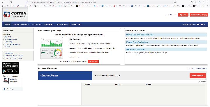SmartHub gives members access to an overview of their Cotton Electric account from anywhere.
