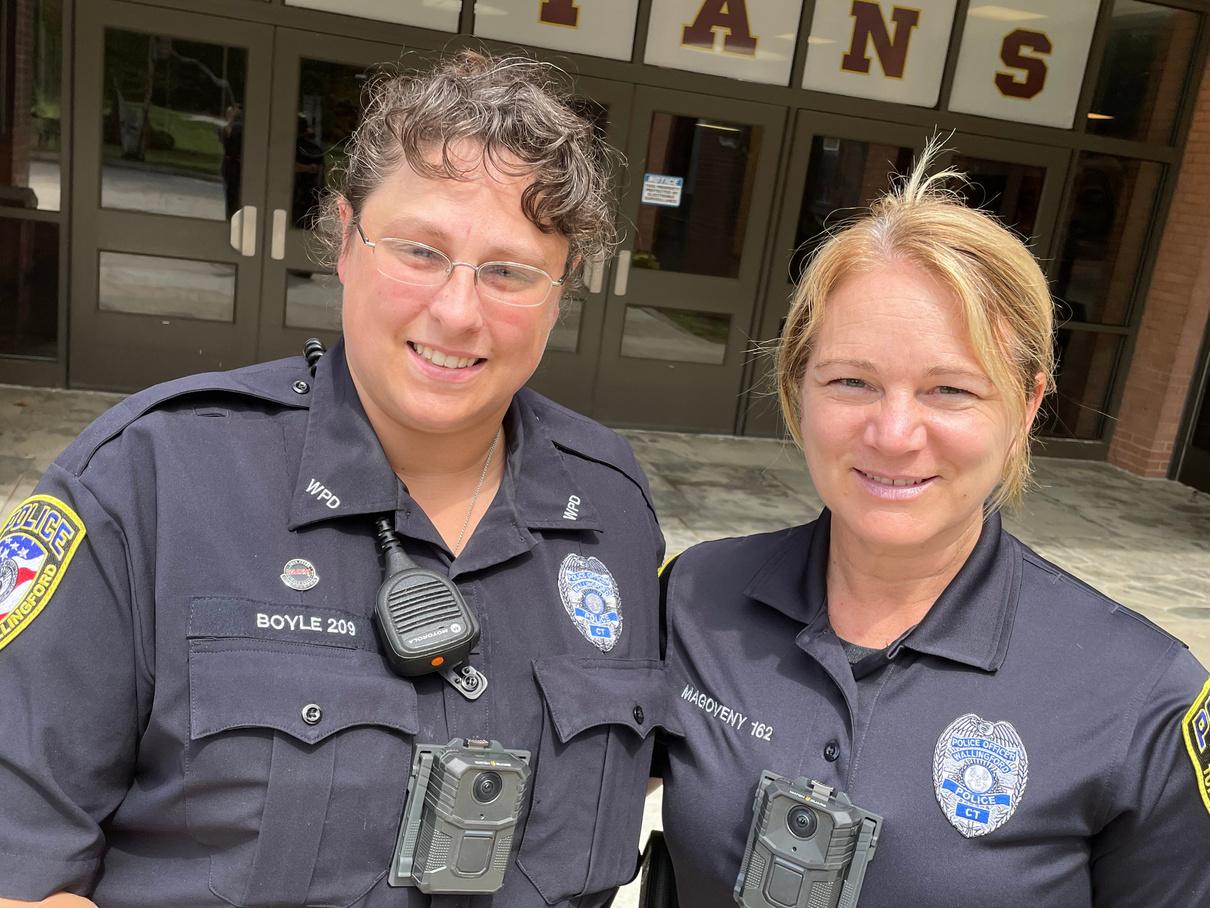 School resource officers Megan Magoveny, a 16 year veteran of the Wallingford Police Department, and Kelly Boyle, who’s been a Wallingford police officer for 10 years, are members of AFSCME Local 1570