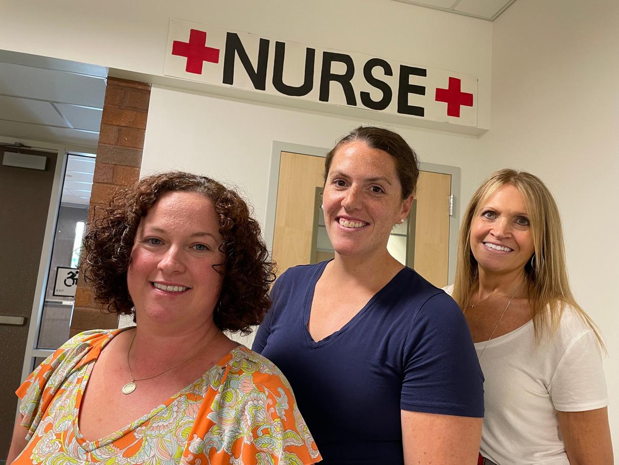 The school nurse team at Francis Walsh Intermediate School in Branford, Aug. 25, 2022. From left: nurses Jessica Paquette and Roz Laing, health aide Donna Barrett │Lauren Takores, Council 4 staff