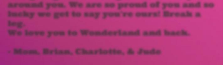 Alexandra, Congratulations on your Alice in Wonderland performance! You will always be our shining star! We love you!