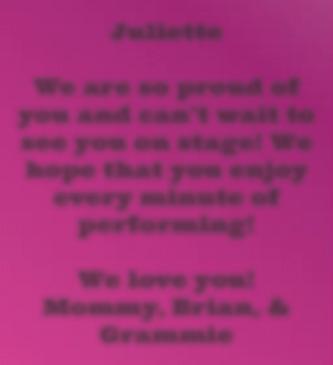 We are so proud of you and can’t wait to see you on stage! We hope that you enjoy every minute of performing!