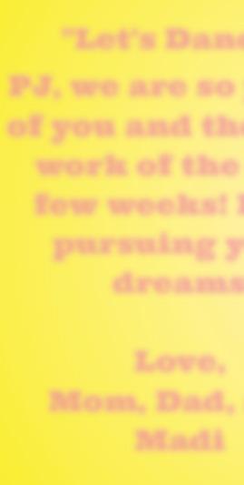 "Let's Dance!" PJ, we are so proud of you and the hard work of the past few weeks! Keep pursuing your dreams! Love, Mom, Dad, and Madi