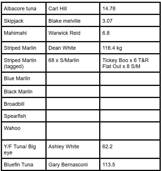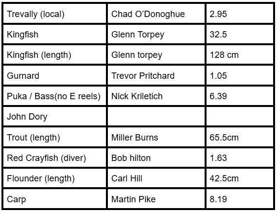 For our more Southern members we now have a new weighstation set up at Port Waikato. This is run by Chantelle Brock, who can be contacted on 0276998058. She says that she’s available most of the time, but please try to call 30-45 minutes before you arrive.