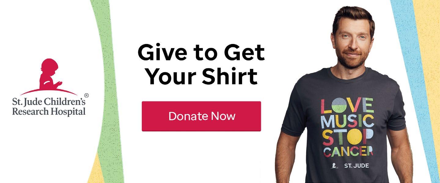 Launched five years ago, the shirt went through multiple iterations. “We went to the We Won’t Stop shirts as a response to the pandemic,” says ALSAC/St. Jude Dir./Country Cares Scott Hinshelwood. “Last year, we went to Love Music Stop Cancer, but you’d still see artists wearing This Shirts onstage or socials. We realized, we built This Shirt, we just need to keep building on it.”