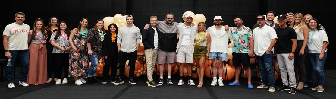 House Of God: RCA’s Kane Brown and Katelyn Brown and team celebrate No. 1 “ Thank God,” the latter ’ s inaugural chart topper, at the Browns’ home in Nashville.