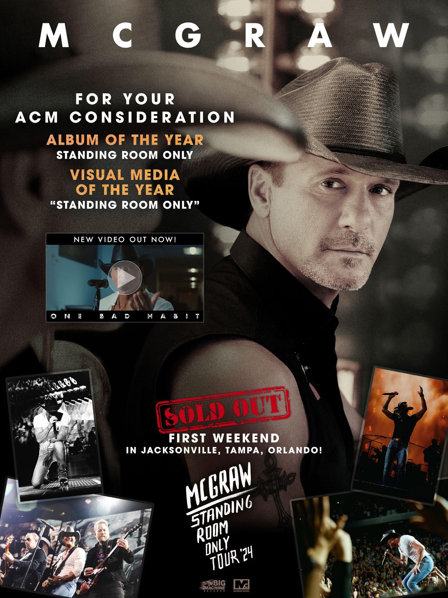 “Tim’s presence onstage makes you feel pride, like you’re watching a friend continue to do what they love while you sing along to every nostalgic ‘90s/2000s McGraw song,” says Morrison. Closes Jacobs, “What a great way to start our 2024 concert season in Tampa Bay!” Full list of dates here; reach Morrison here and Jacobs here