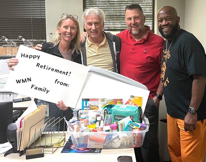 Retirement? Depends: Warner Music Nashville staff give outgoing Cumulus VP/Country Charlie Cook a proper send-off basket aimed at the aged. Pictured (l-r) are Kristen Williams Martens and James Marsh