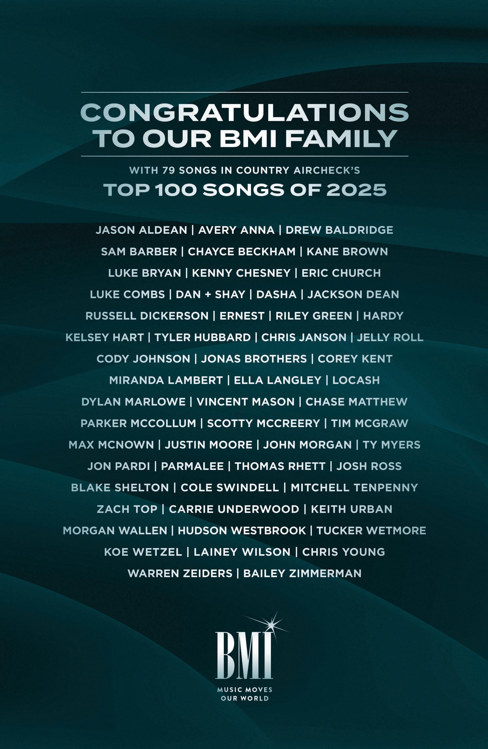 COUNTRY AIRCHECK’S TOP 100 SONGS OF 2025