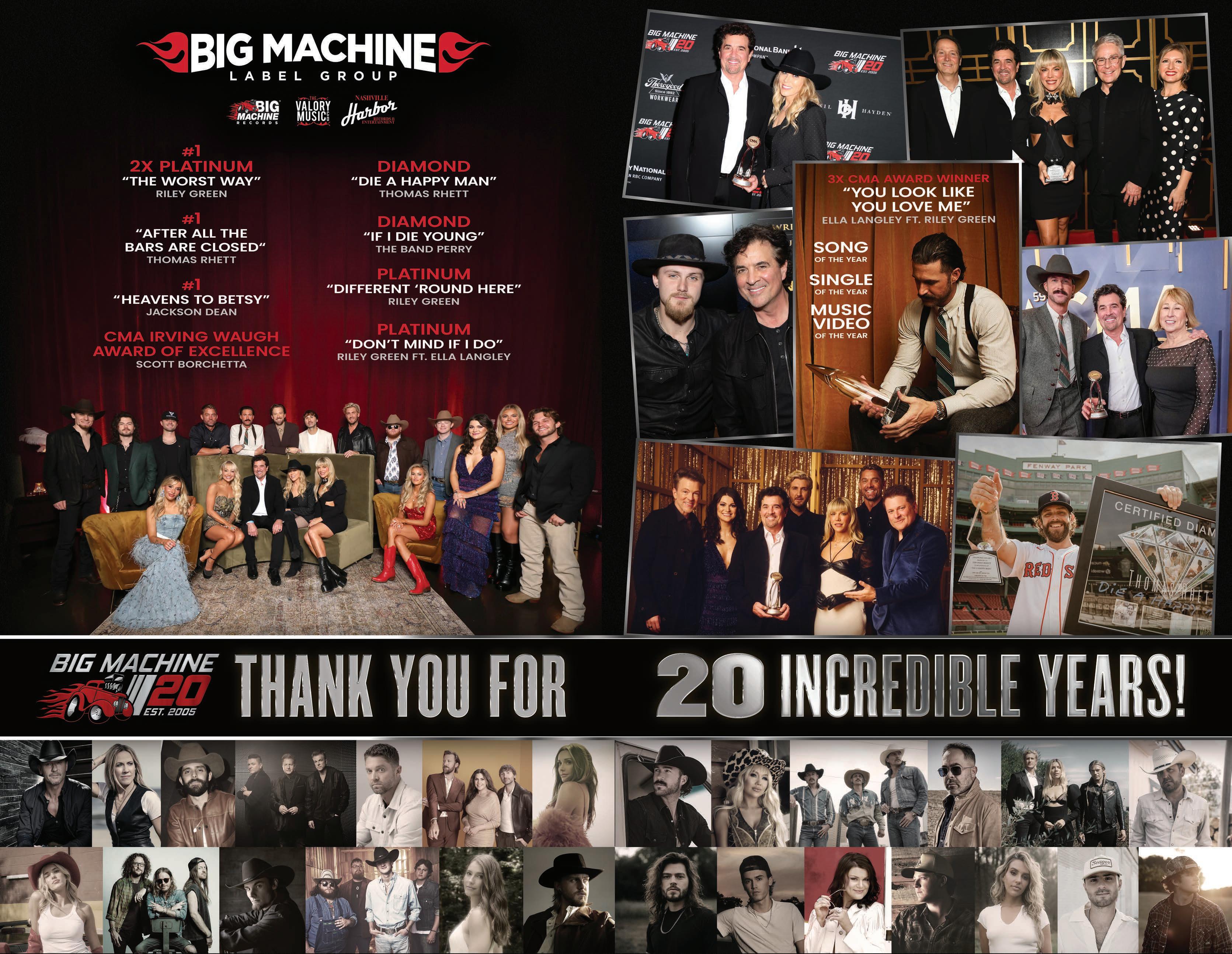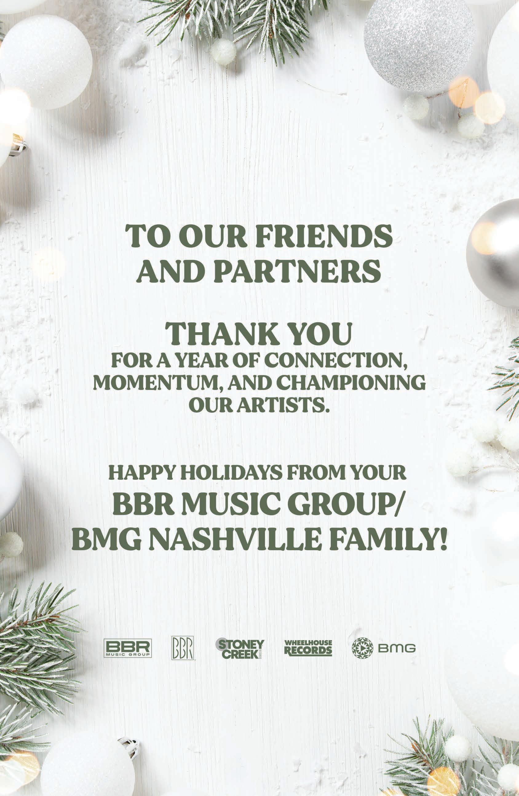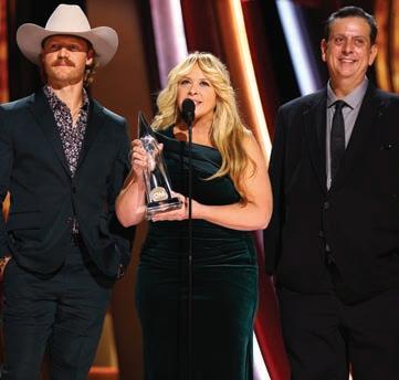 “Country is hotter than ever” is a familiar refrain. Curiously, the metrics don’t seem to bear that out. adio ratings are at at best. Likewise, awards show ratings. Consumption market share has declined. Fewer new artists have broken through at radio. Radio corporations continued to post revenue declines and reduce sta . Similarly, Nashville’s major labels cut promotion teams and reduced overall headcount. On the bright side, their coastal parents launched several new country imprints, though rosters and teams have thus far been kept small. Perhaps most notably, sudden and shocking passings cast a pall over the year. Artists, radio and industry execs left unfathomable voids in the hearts of many. Numerous organizations o ered resources and awareness around mental health and overall wellness, including CMA, ACM, MHA and MusiCares. Meanwhile, support remained