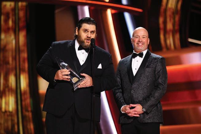 “There’s not a lot of people in the world who do what we do for a living,” he continues. “Between radio, records and artists, we have a kindred spirit. It’s a small world and, unfortunately, only getting smaller. So, when we’re around people that do what we do, and we’re able to talk shop and be silly about stu that normal people won’t have any clue about, it’s refreshing. Most people aren’t like us in Echoing a comment Kix Brooks made during the show, Collins says of winning, “Hell no, it never gets old. It’s not easy to win, and it’s a huge honor, so it comes with a lot of humbleness that we were able to