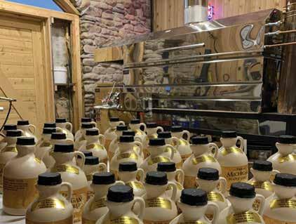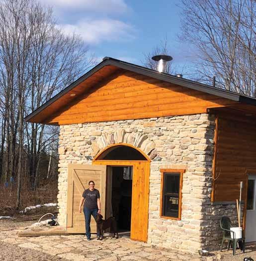 “Things just seemed to line up,” he recalls. Right at the time he was constructing the building, American Transmission Company was changing the grade on some of their nearby transmission lines that were on the Bruces’ property. When they cut into a bluff, it exposed a small lode of natural limestone. Peter brought it home and used it in the construction of the sugar shack. The new sugar shack was completed in 2020, at which time they also purchased a brand-new evaporator to streamline the syrupmaking process.