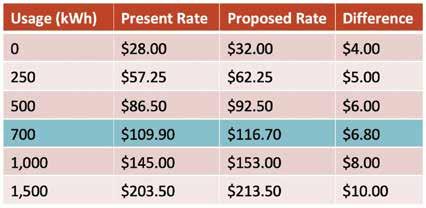 Cherryland’s board of directors will consider a rate change proposal at its monthly board meeting on March 18. The proposed rate change for residential members includes: