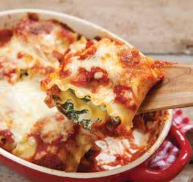 drain and cool. In a large bowl, combine the ricotta and cottage cheese, 1½ cups Monterey Jack, ½ cup Parmesan cheese, spinach, garlic, and salt and pepper. Spread half of the sauce into the bottom of a 9-inch broiler-safe baking dish. Lay the lasagna noodles evenly on a large cutting board or fl at surface. Spread the fi lling mixture evenly onto each noodle. Gently roll up each noodle lengthwise and place seam side down in the baking dish. Drizzle rollups with remaining sauce and top with remaining cheese. Cover tightly with foil and bake for 30 minutes. Remove foil and broil for 1–2 minutes, or until the cheese is dark golden brown. Garnish with fresh parsley. Enjoy!